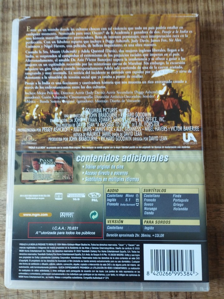 Passage en Inde Judy Davis James Fox Lean - DVD Region 2 Anglais espagnol AM