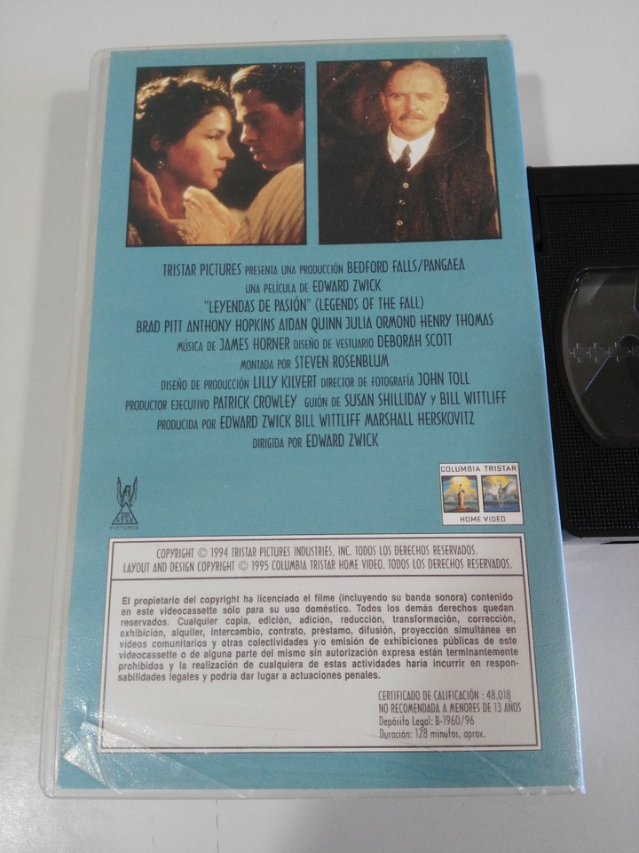 LEGENDS OF PASSION BRAD PITT ANTHONY HOPKINS ZWICK - VHS TAPE ED SPANISH &- s...