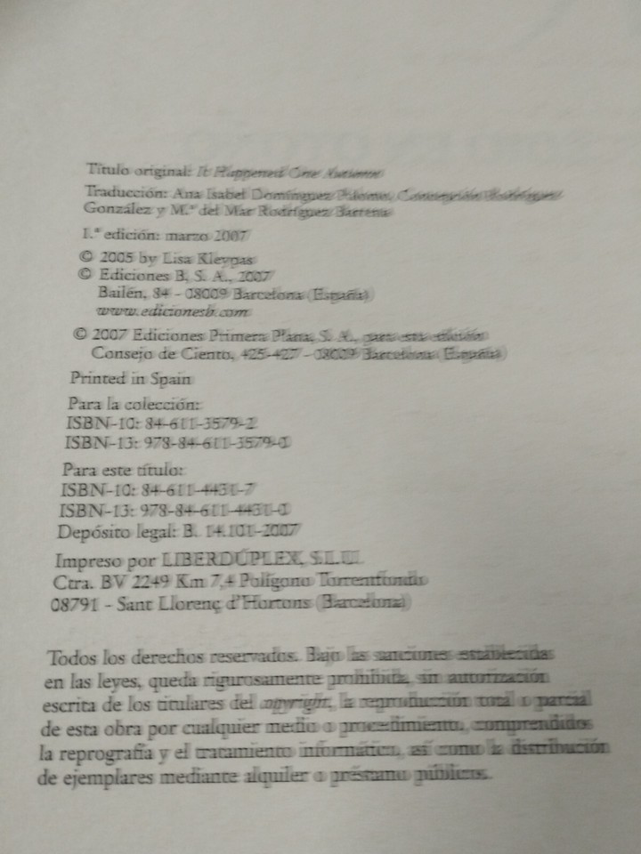 It Happened in Autumn Lisa Kleypas Romance RBA 2007 BOOK Spanish Am