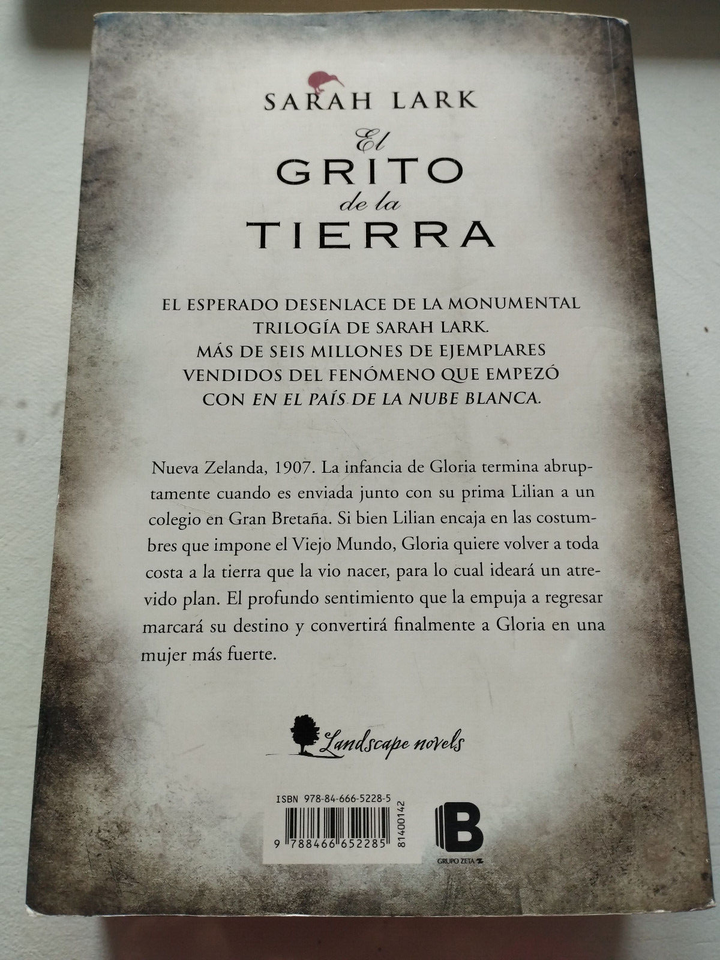 el Scream de the tierra , Sarah Lark Book, Historical novel, Neozylaland Saga, Sarah Lark Trilogy, Editorial Zeta, Book in Spanish, EAN 978466652285, Female Literature, Family Drama, Book Soft Tapa, New Zealand
