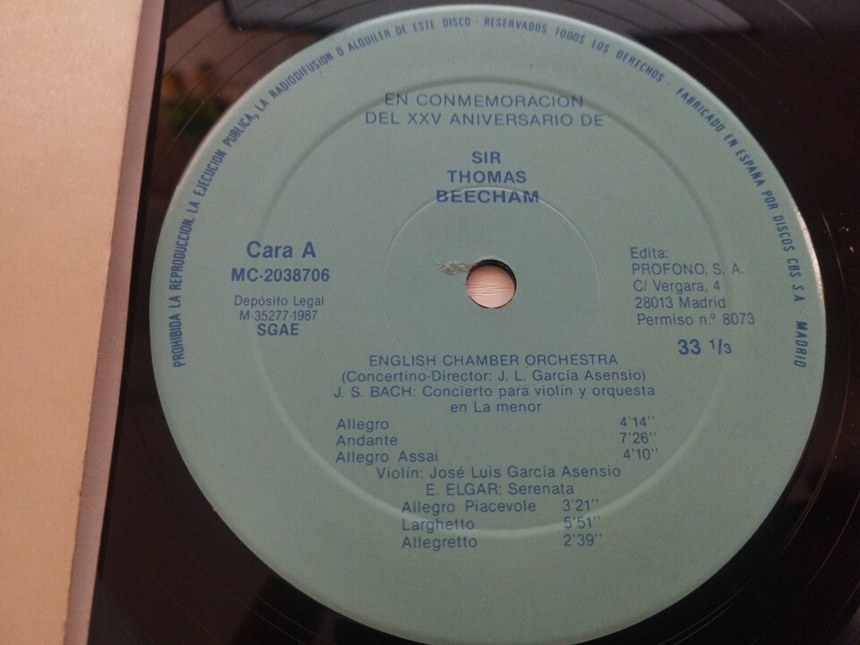 Sir Thomas Beecham XXV Aniversario 1987 MC2038706 - LP 12" Vinilo VG/VG