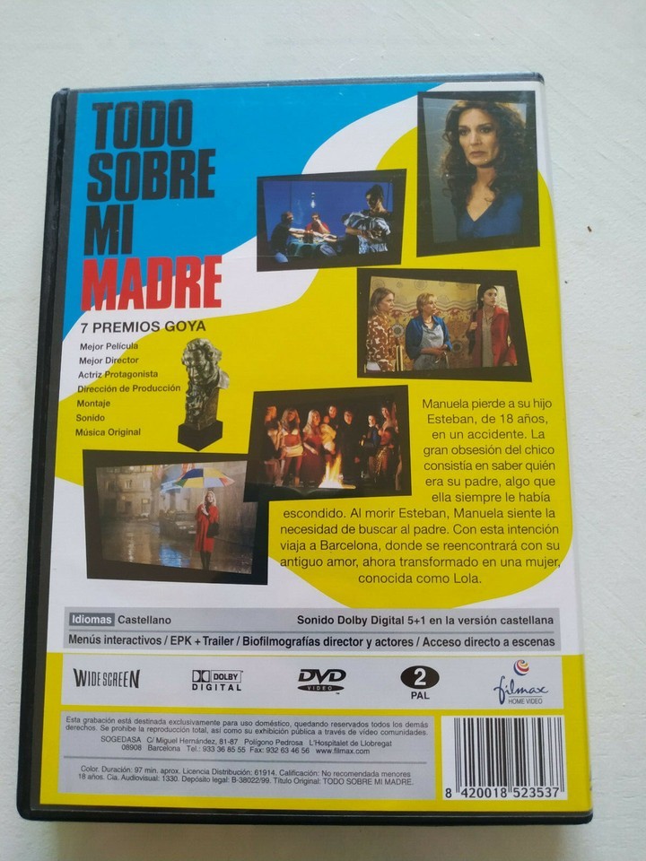 All About My Mother Pedro Almodovar - DVD + Spanish Extras Region 2 Am- show ...