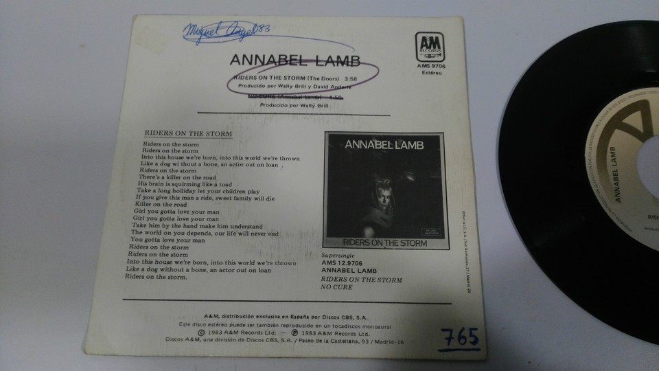 Annabel Lamb Riders on the Storm 1983 Am Single 7 "Vinyl Spanish Edition Rare !!!