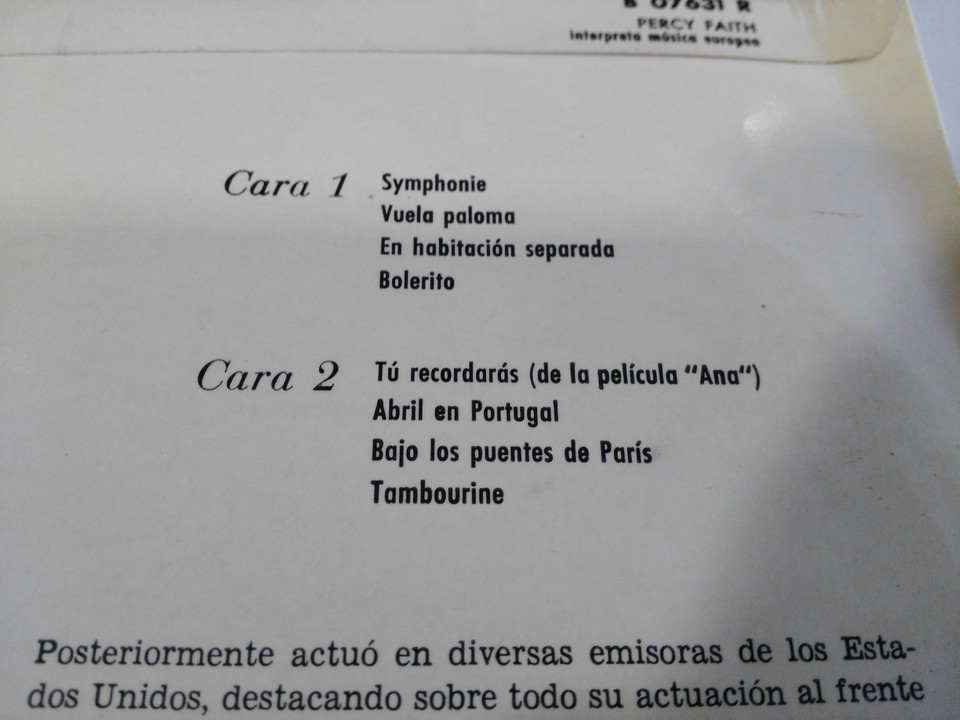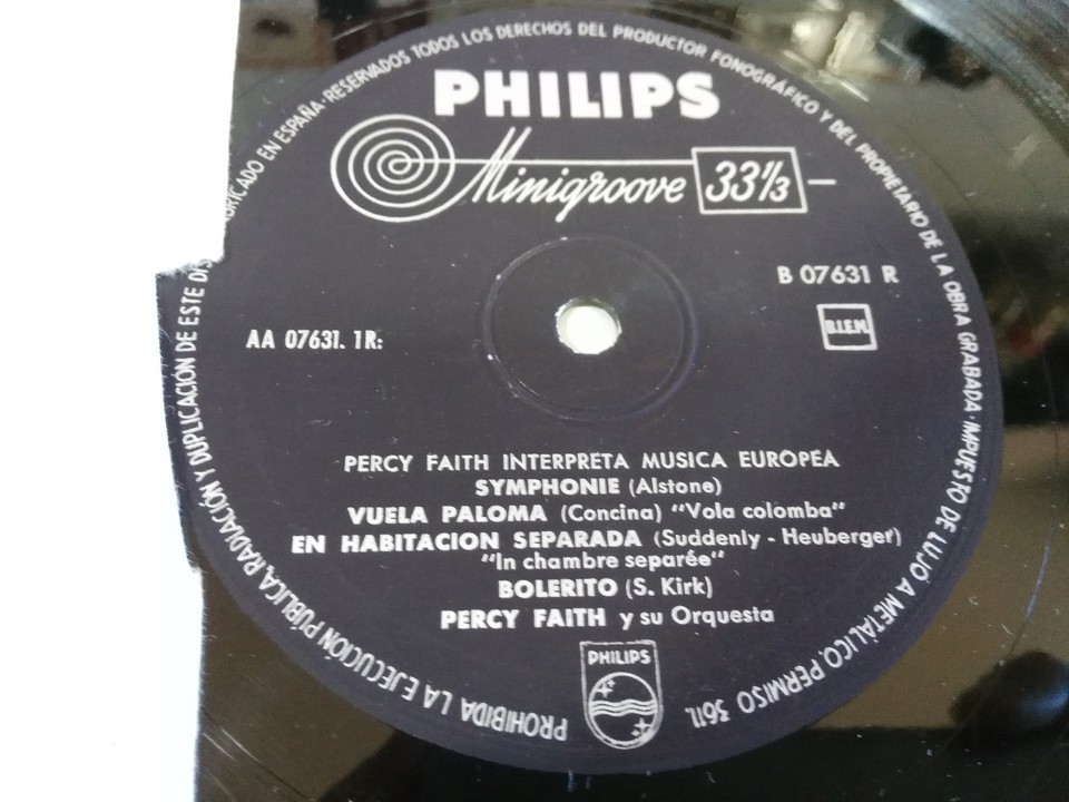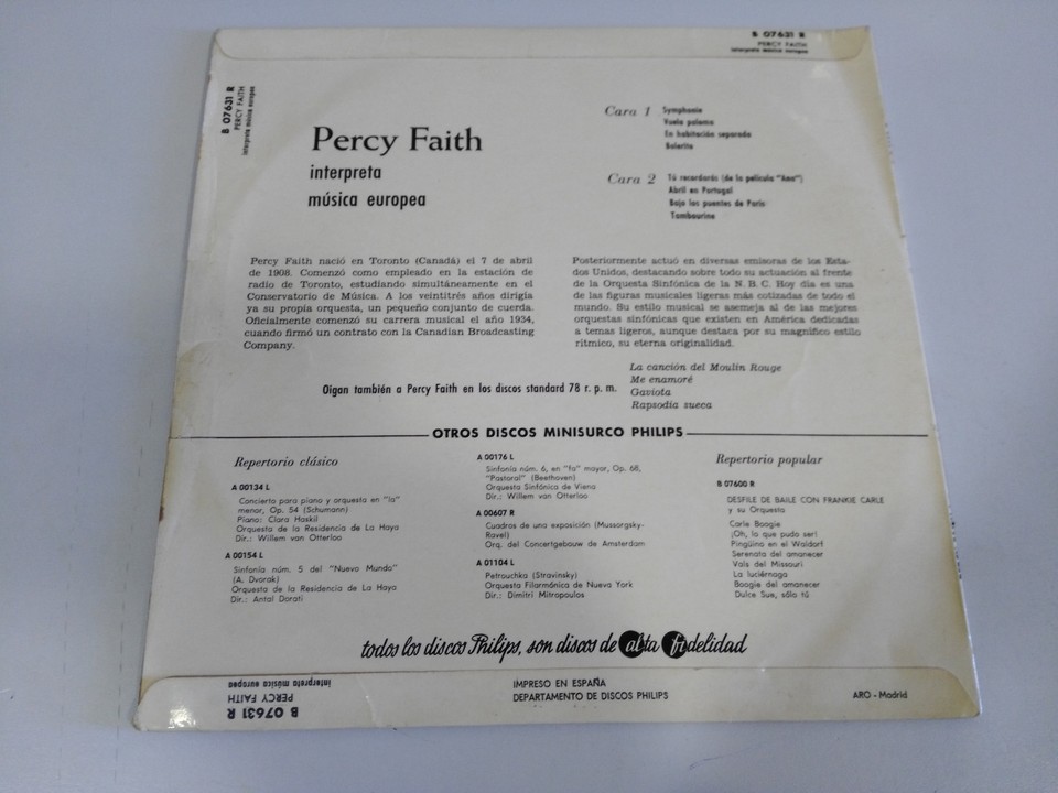Percy Faith interprete la musique europeenne LP Vinyl 10 "1959 Philips Spanish Press