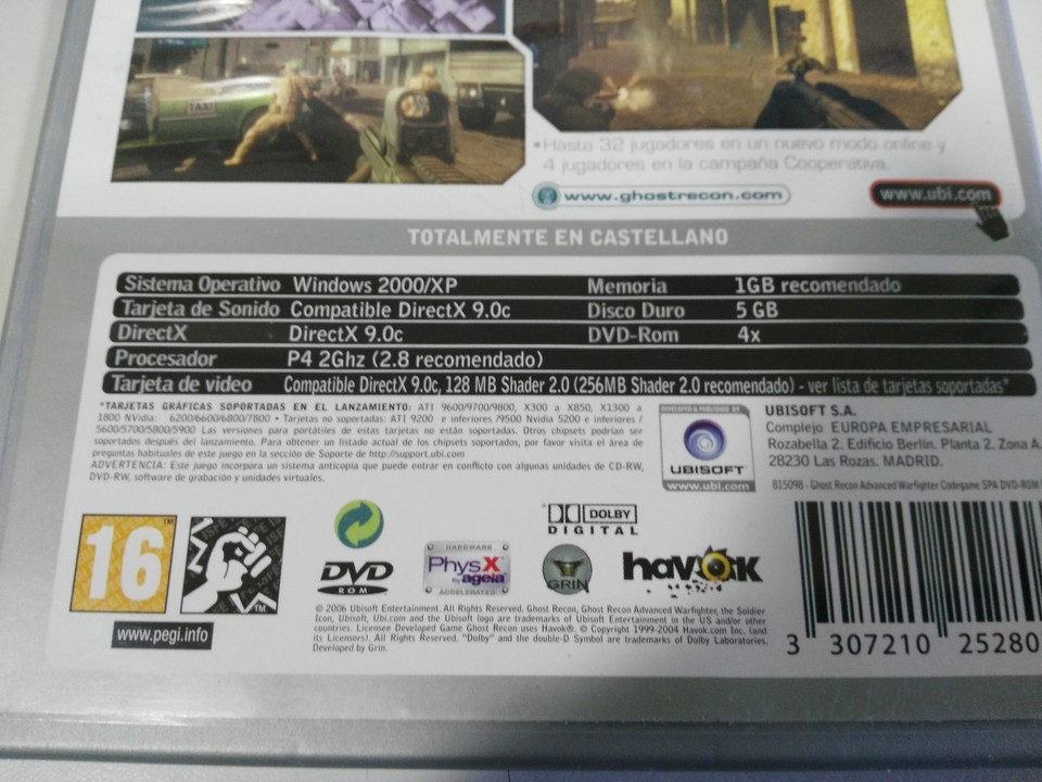 Ghost Recon Advanced Warfighter juego PC Espagnol Dvd-Rom Code Game Ubisoft - Am