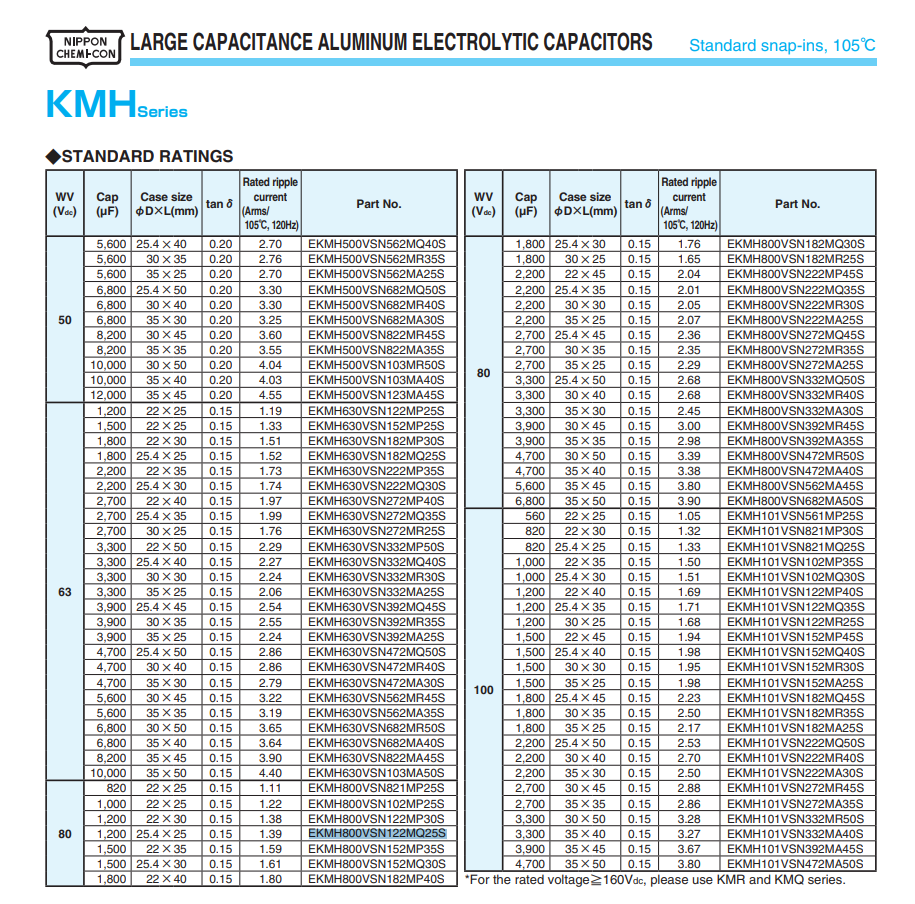 KMH 1200uF 80V, EKMH800VSN122MQ25S |