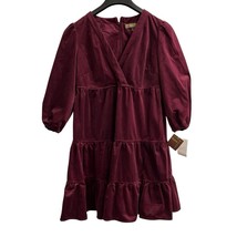 Melonie T Dress Womens 12 Purple Merlot Corduroy Baby Doll Mini Tiered Fall