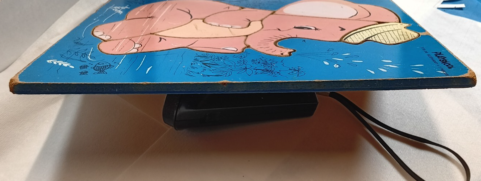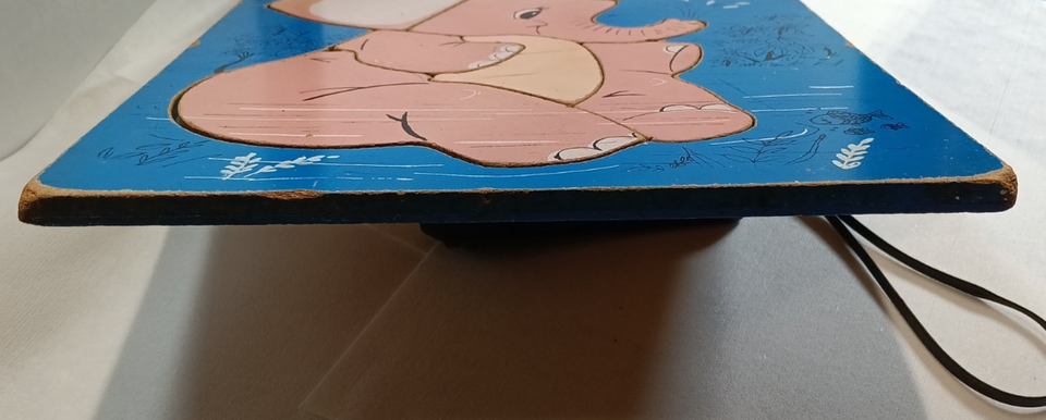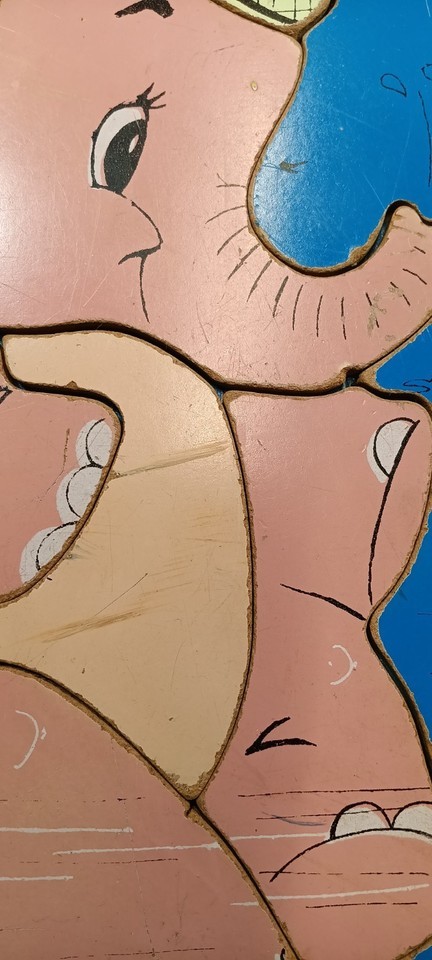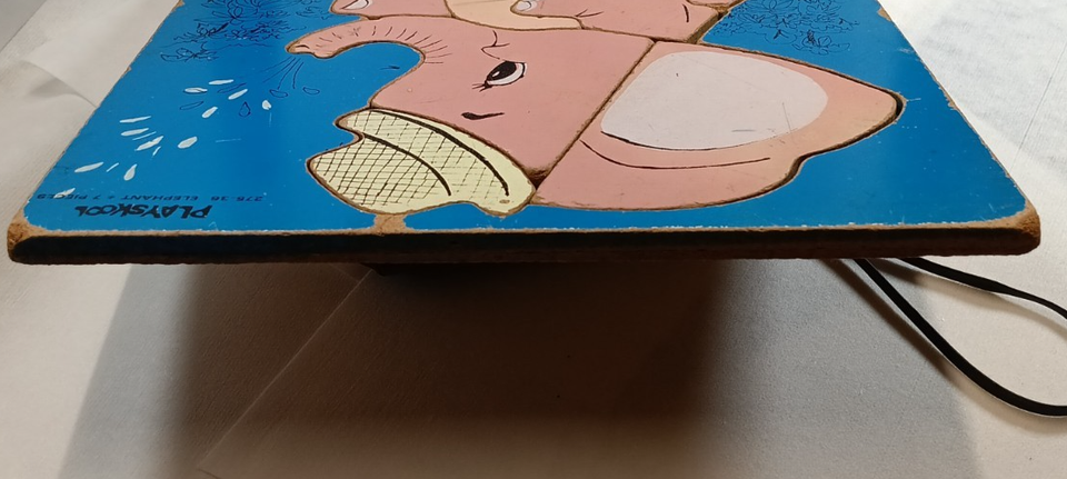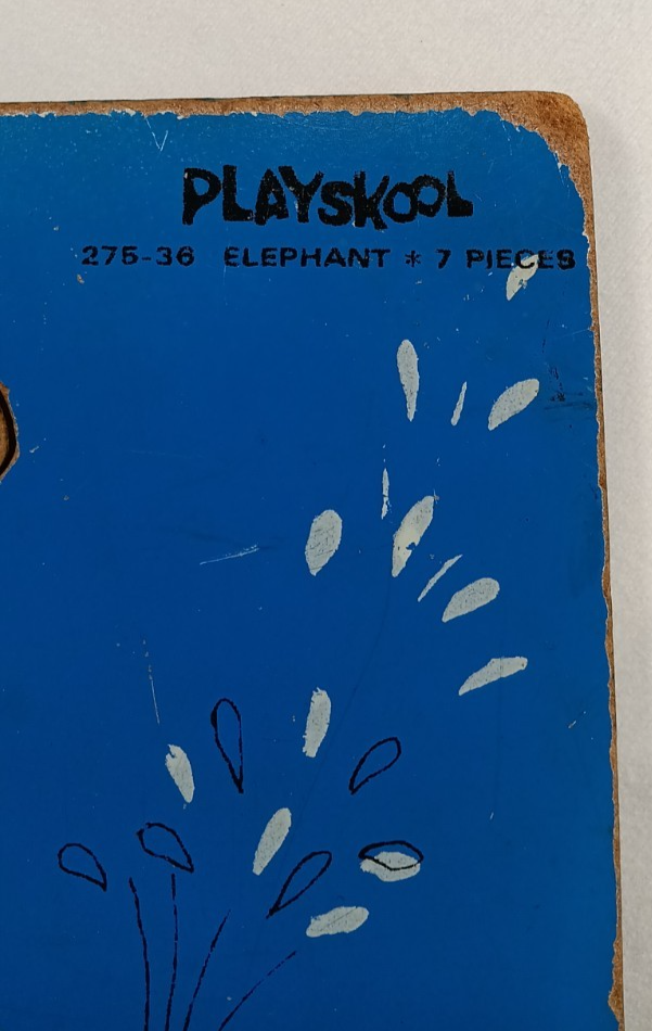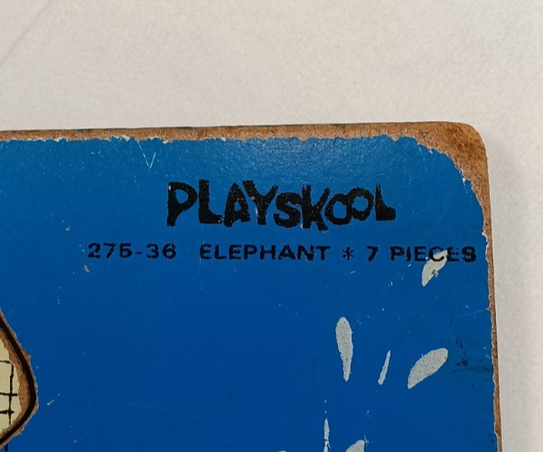 Vintage Playskool wooden puzzle 275-36, Elephant, 7 pieces. Made in USA. ca.1970