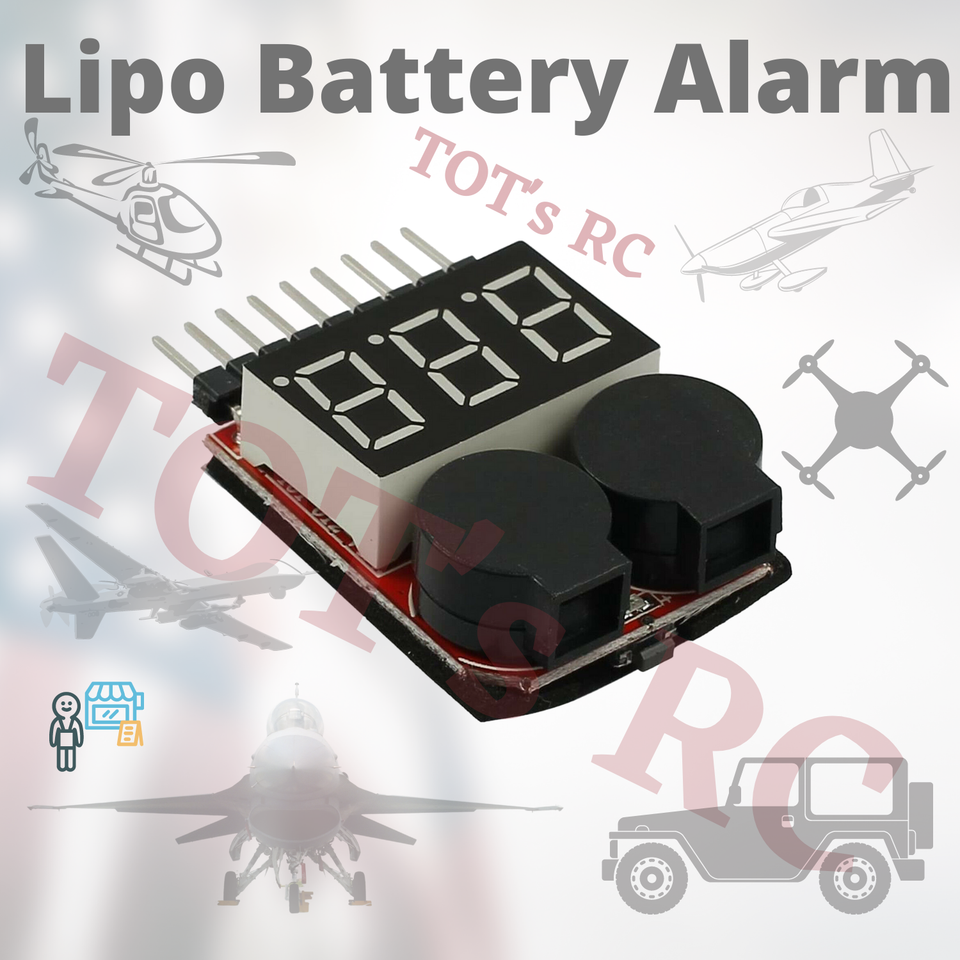 Hi, Here is.... a voltage alarm that I use for my Lipos. This thing is great, you just plug it in, set the value you want to alarm to go off and you are set. If you don't have telemetry this is a good option. I also use this when I upgrade my sons Lead Battery Toys with lipos, so we know when to stop playing and the battery won't go bad.