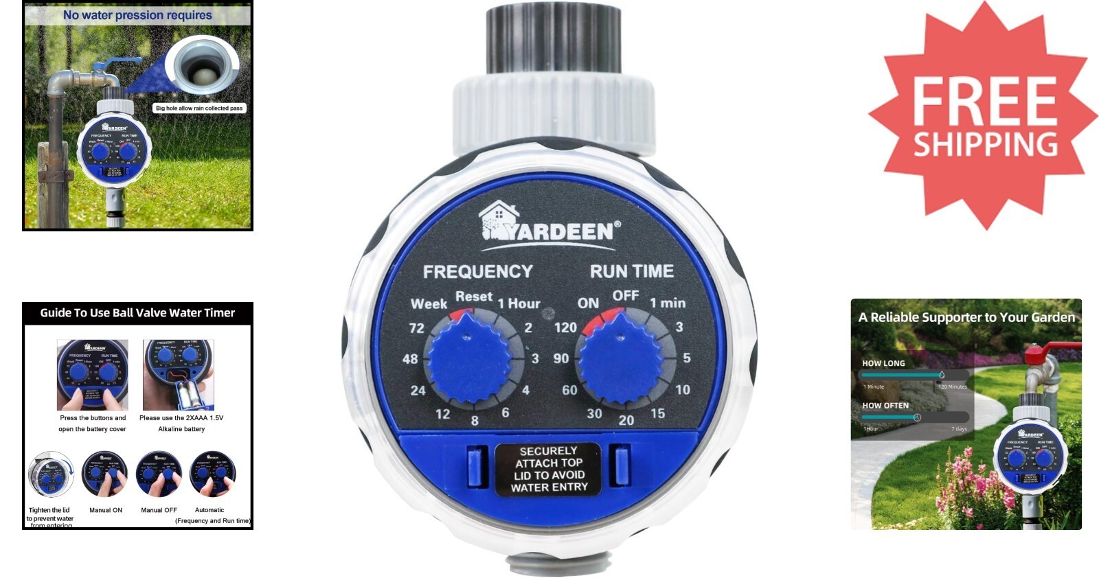 Dual Dial Garden Irrigation Timer - No Water Pressure Needed for Convenient Use