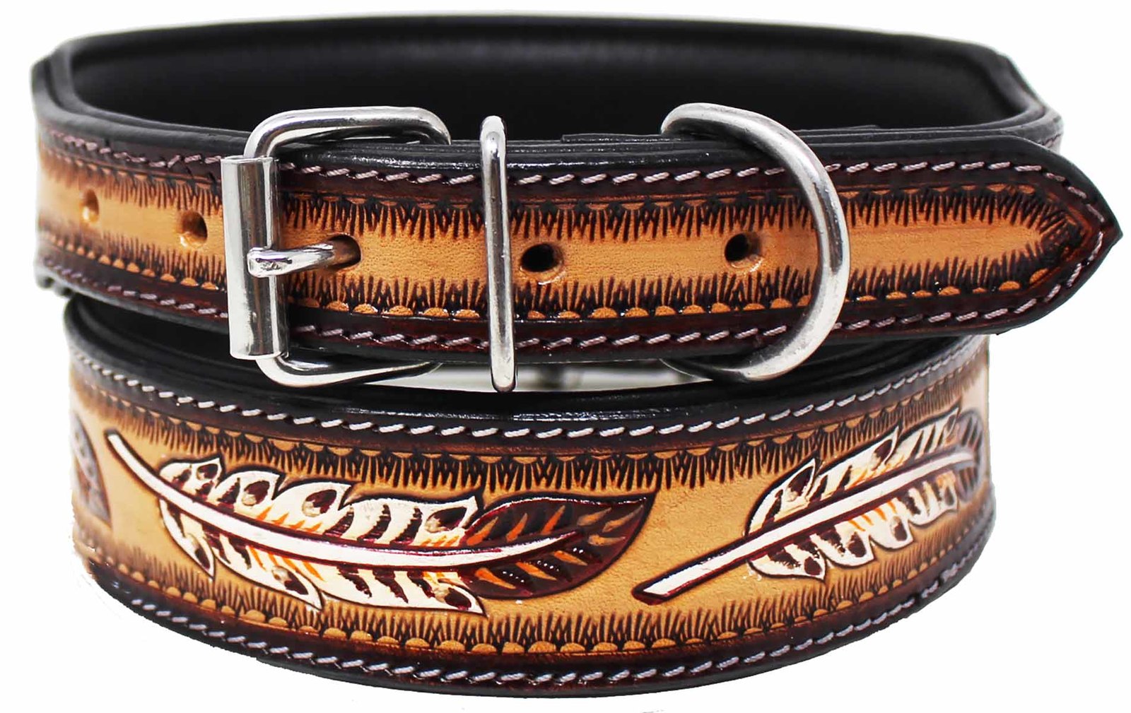 Handcrafted Feather Tooled Leather Dog Collar 60FK59