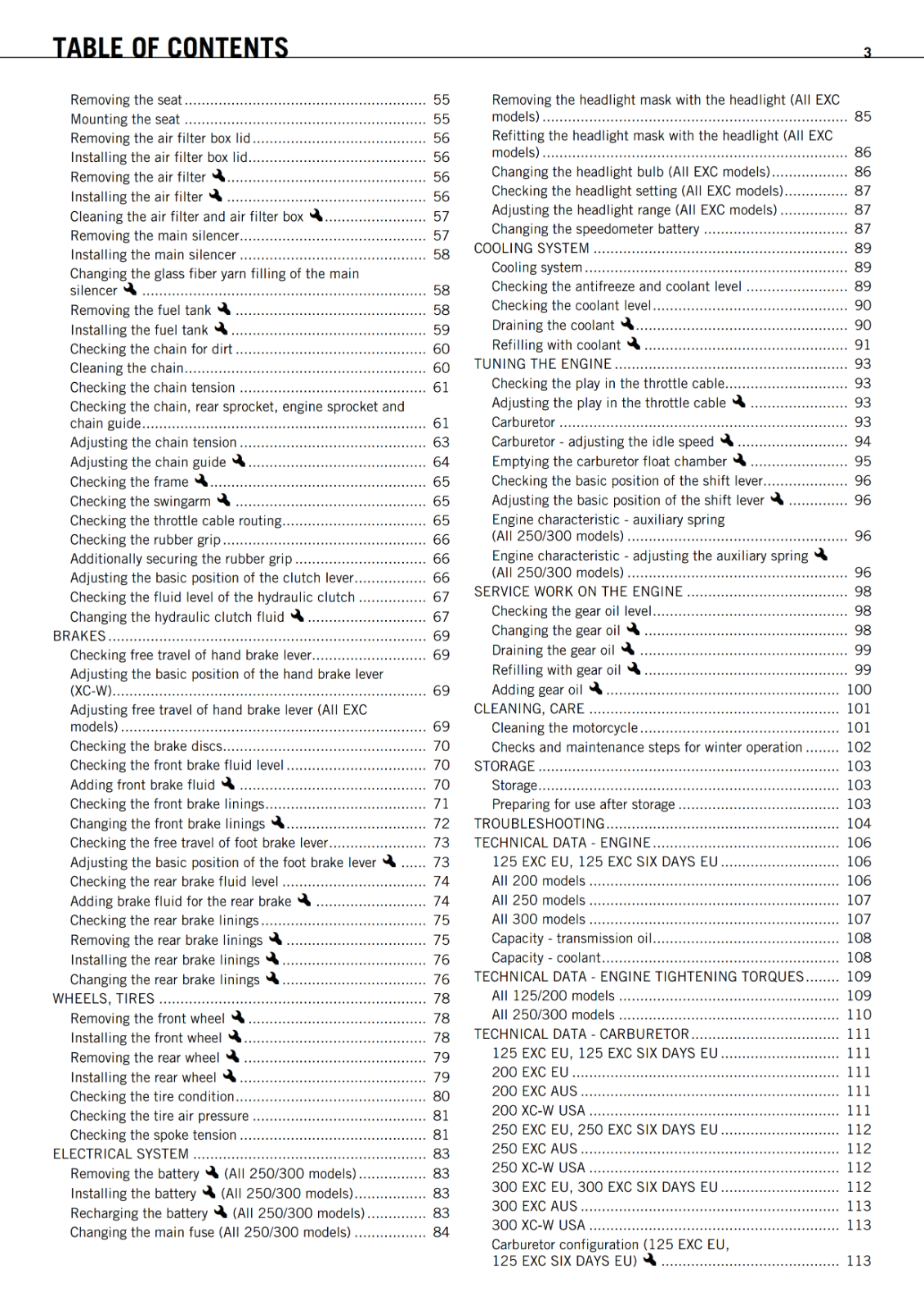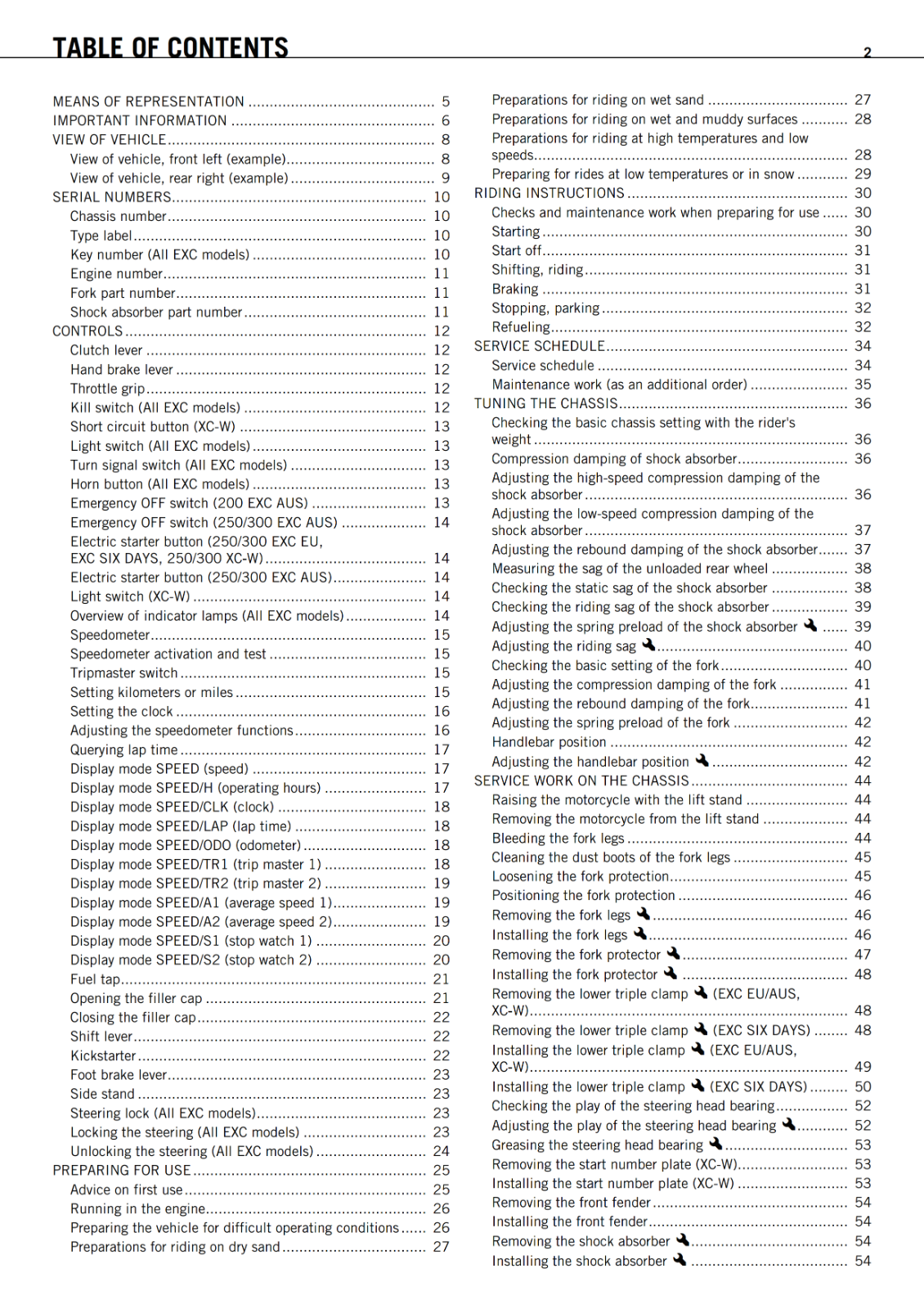 KTM 2012 - 125 200 250 300 EXC SIX DAYS XC-W - OWNERS MANUAL USER GUIDE