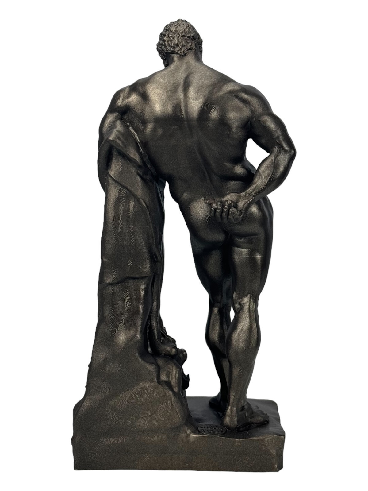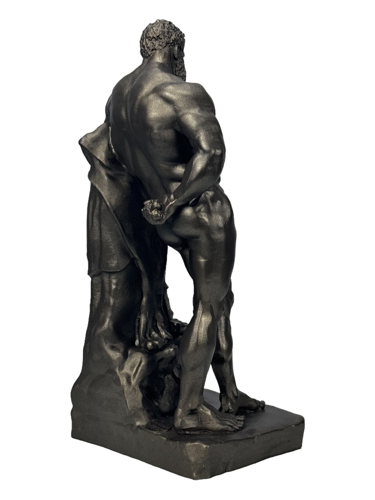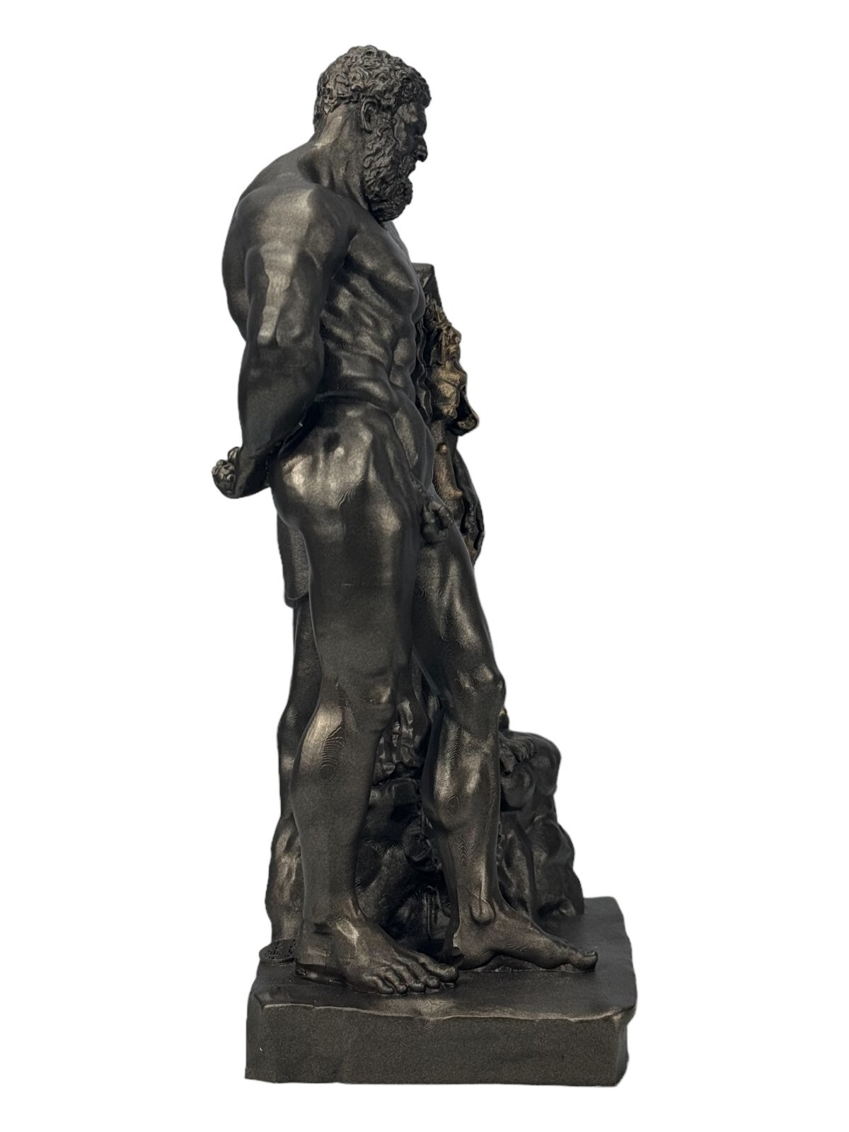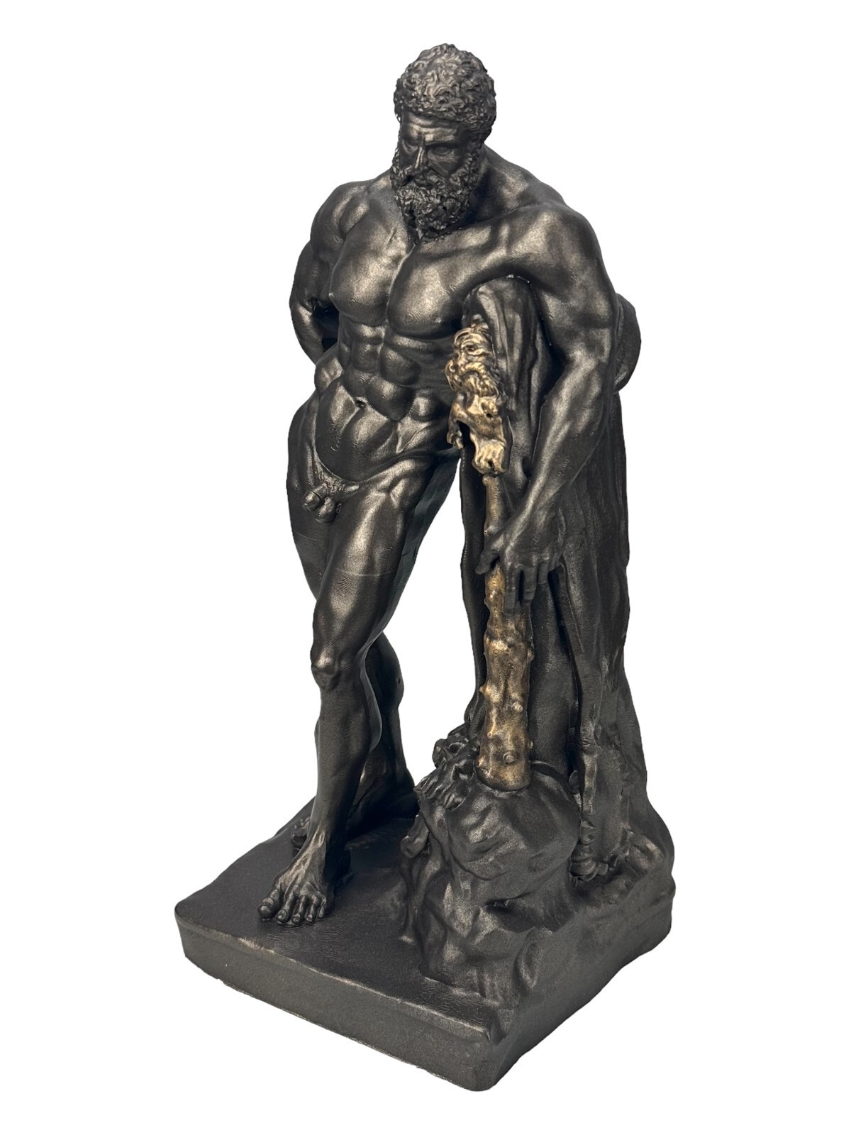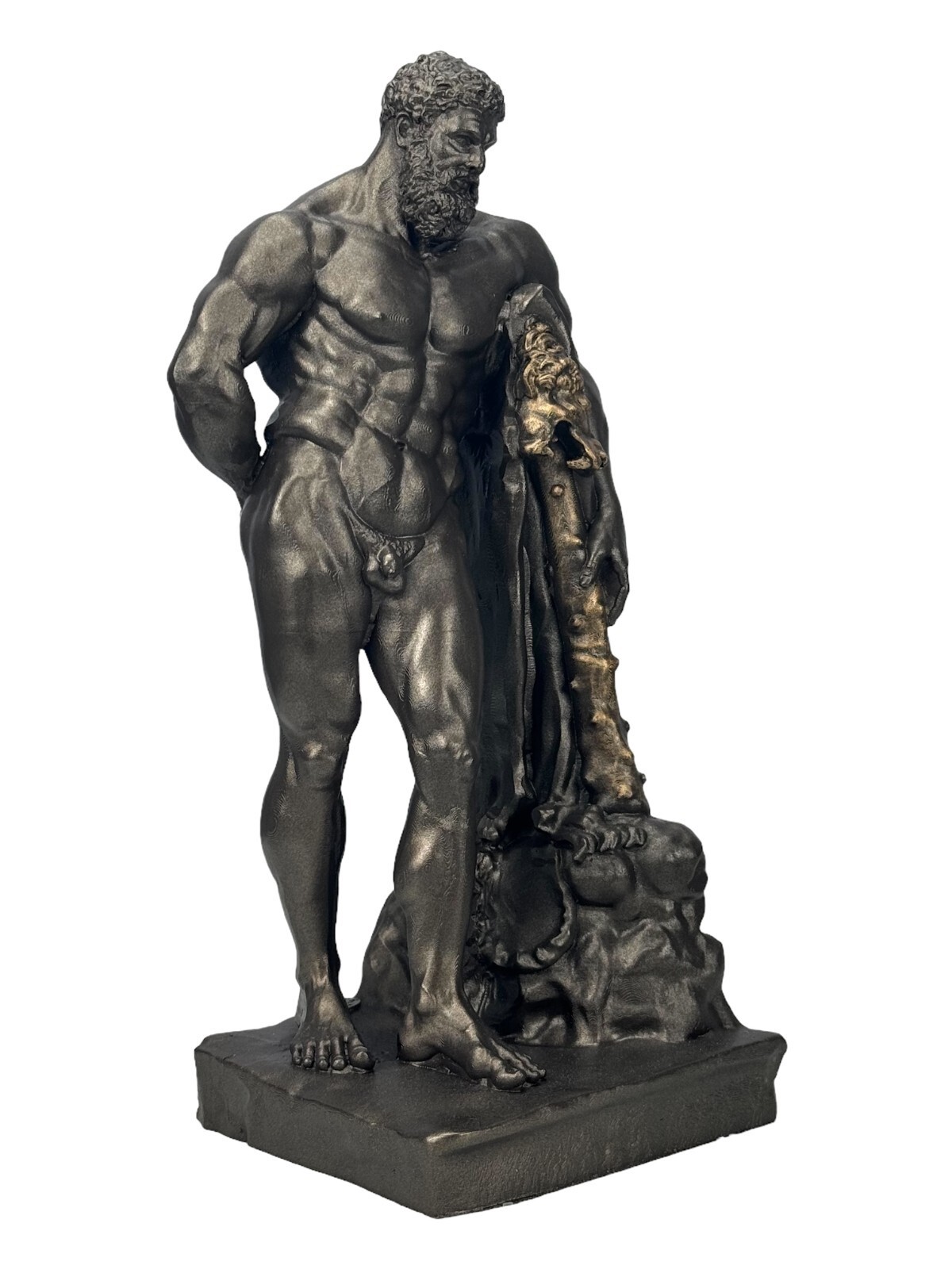 Nuestra estatua se basa en la famosa escultura, conocida como «El Hercules Farnese», que se exhibe en el Museo Archeologico Nazionale de Napoles.