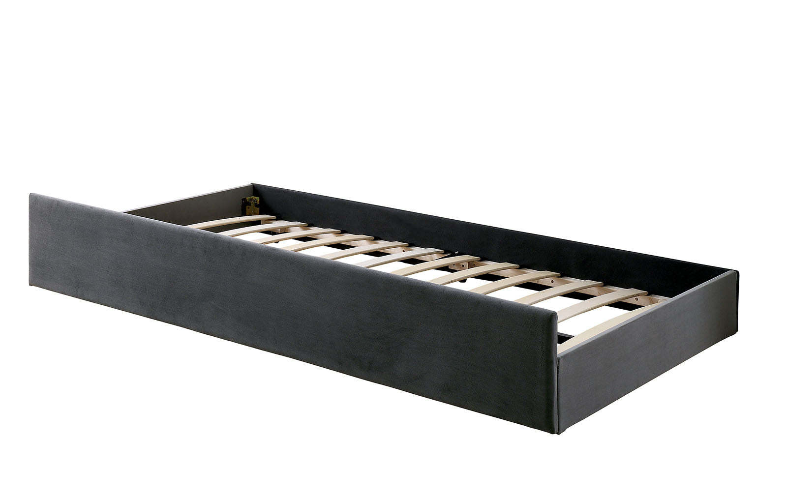 Gray Transitional Daybed with Trundle, Button Tufted, Nailhead Trim