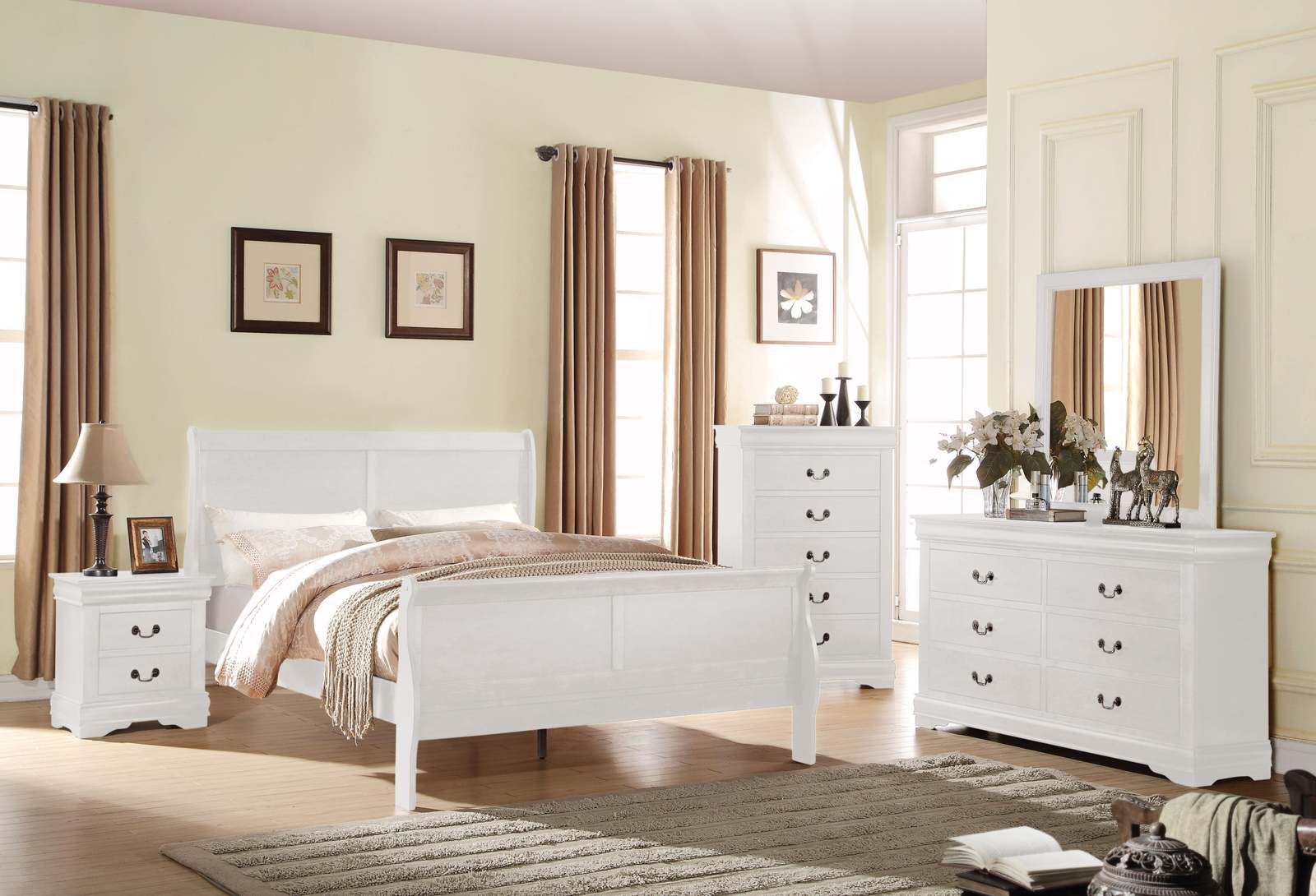 Elegant Louis Philippe White Queen Bed Frame