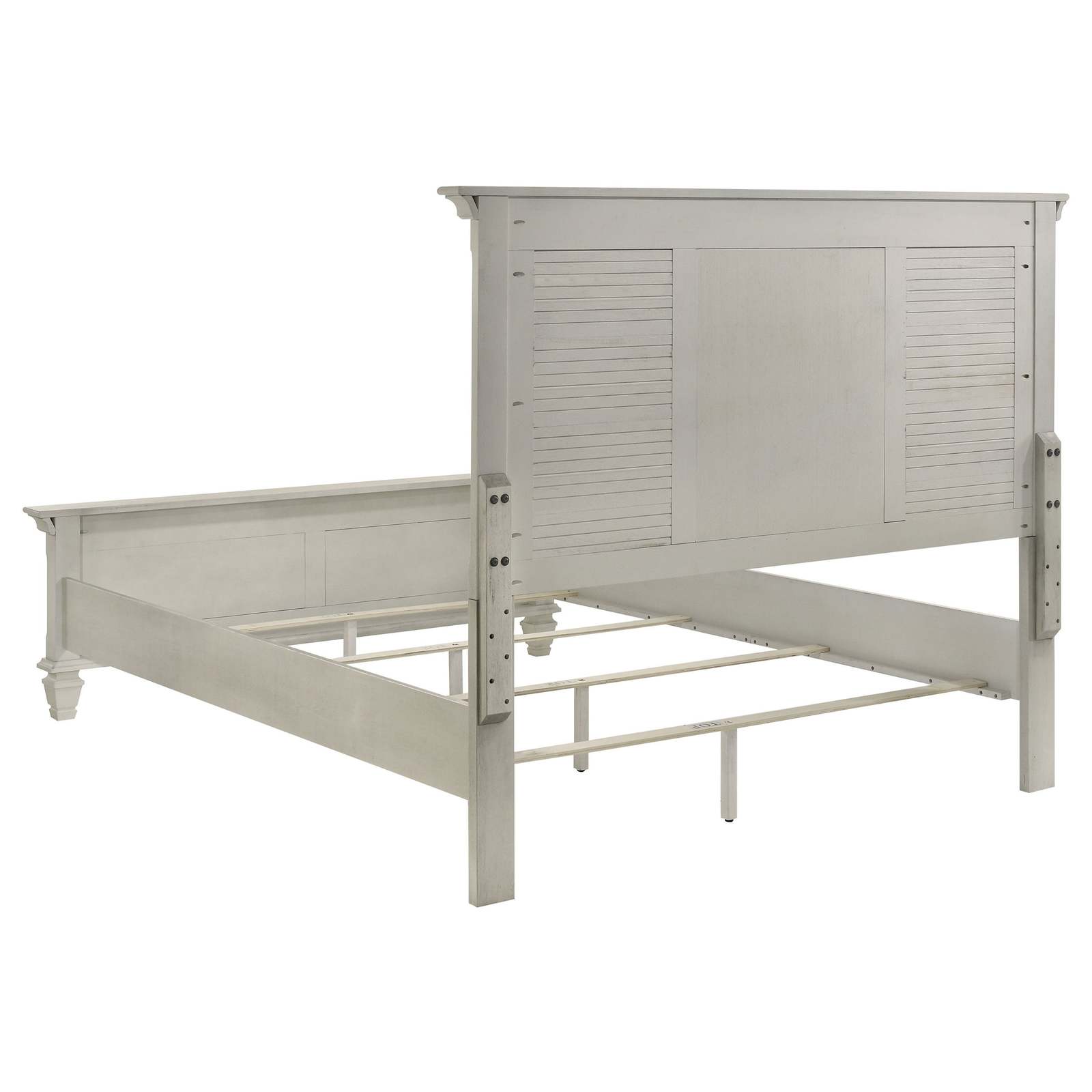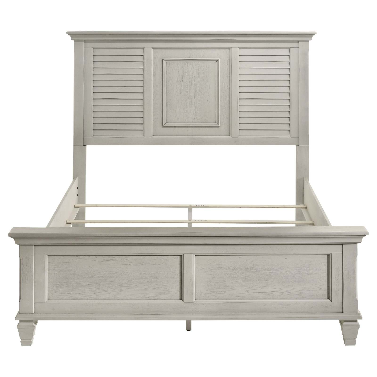 Create a look that feels like home with this Wood Panel Bed from the Hazelwood collection. Details abound in the louvered panel headboard and millwork trim, the rich wood grain enhanced by the wire brush process and finished in warm burnished oak or antique white for a truly rustic bed.