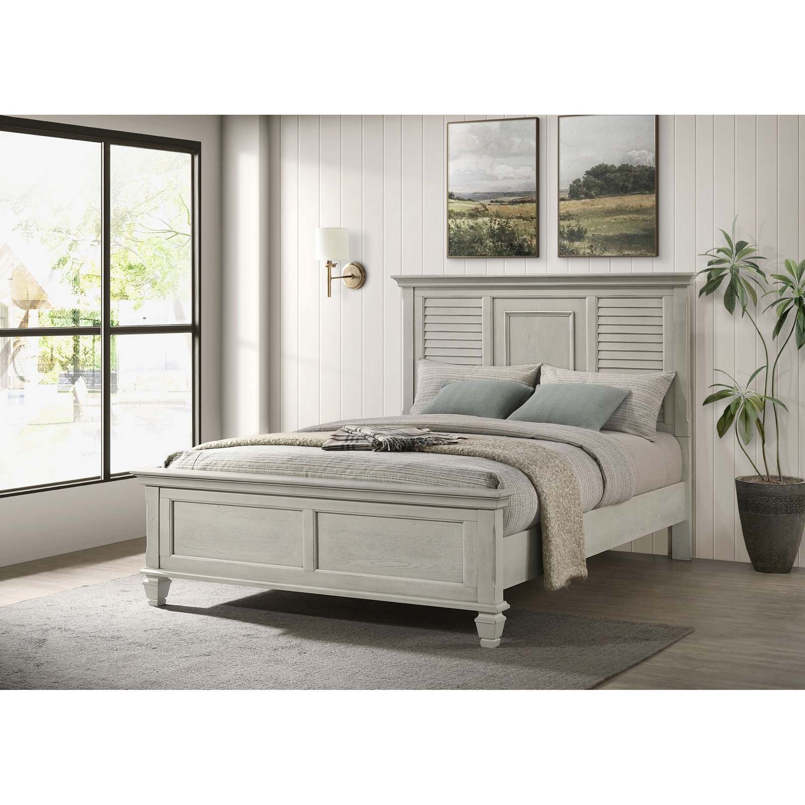 Hazelwood Distressed White Queen Panel Bed - Rustic Style