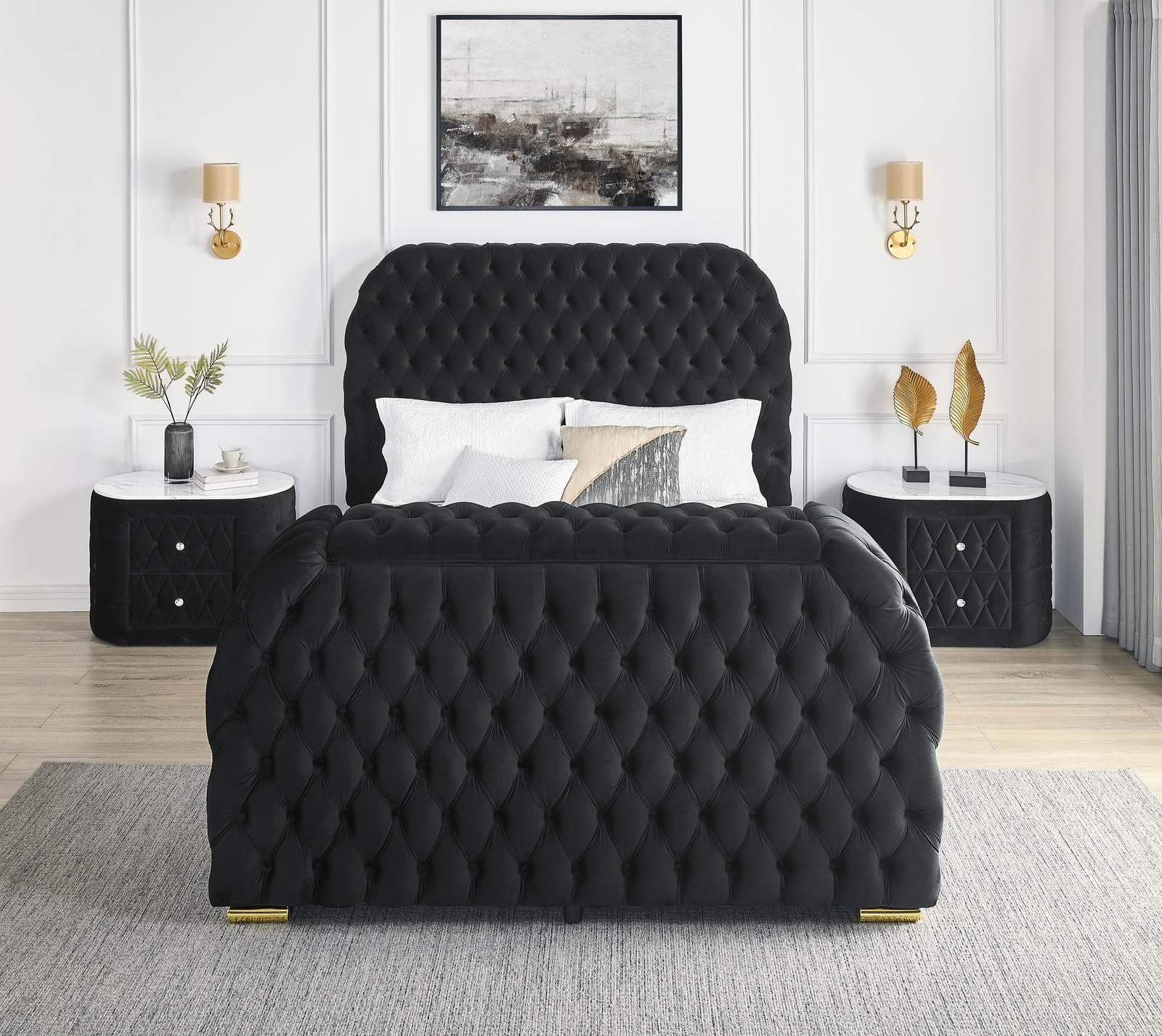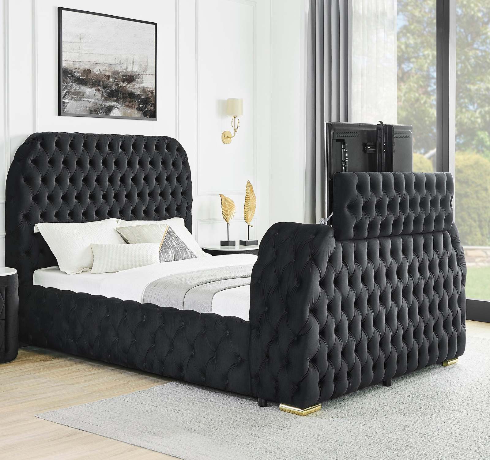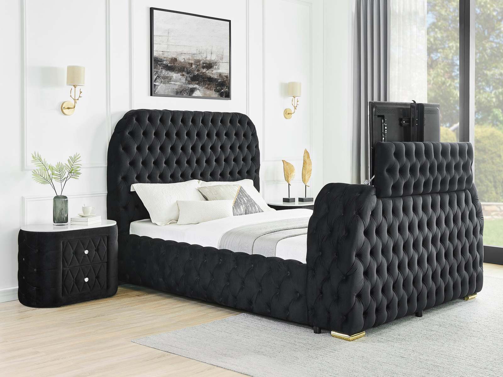 Luxury Queen Bed: Black Velvet, Tufted, TV and 45 similar items