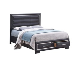 The standout bevel panel headboard gives the bed a modern touch while providing a comfortable backrest for evening reading. Additionally, the two storage drawers ingeniously designed into the footboard maximize your available space, catering to your storage needs without compromising on style. With overall measurements of 56 inches in height, 79 inches in width, and 83 inches in depth, this bed makes a substantial statement in your room without overwhelming it. Remember, a box spring or foundation is necessary for optimal bed performance, assuring you a restful night?s sleep.