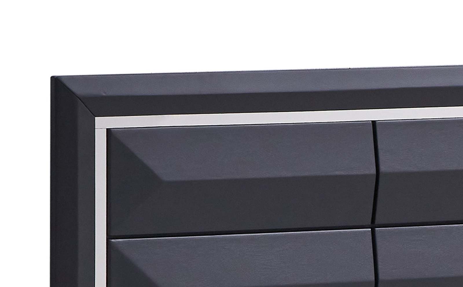 It boasts a beautiful matte black finish complemented by brushed steel accents, creating a striking visual appeal that harmonizes with various decor styles. Made from durable wood veneer, this bed not only ensures longevity but also brings a touch of sophistication to your space.