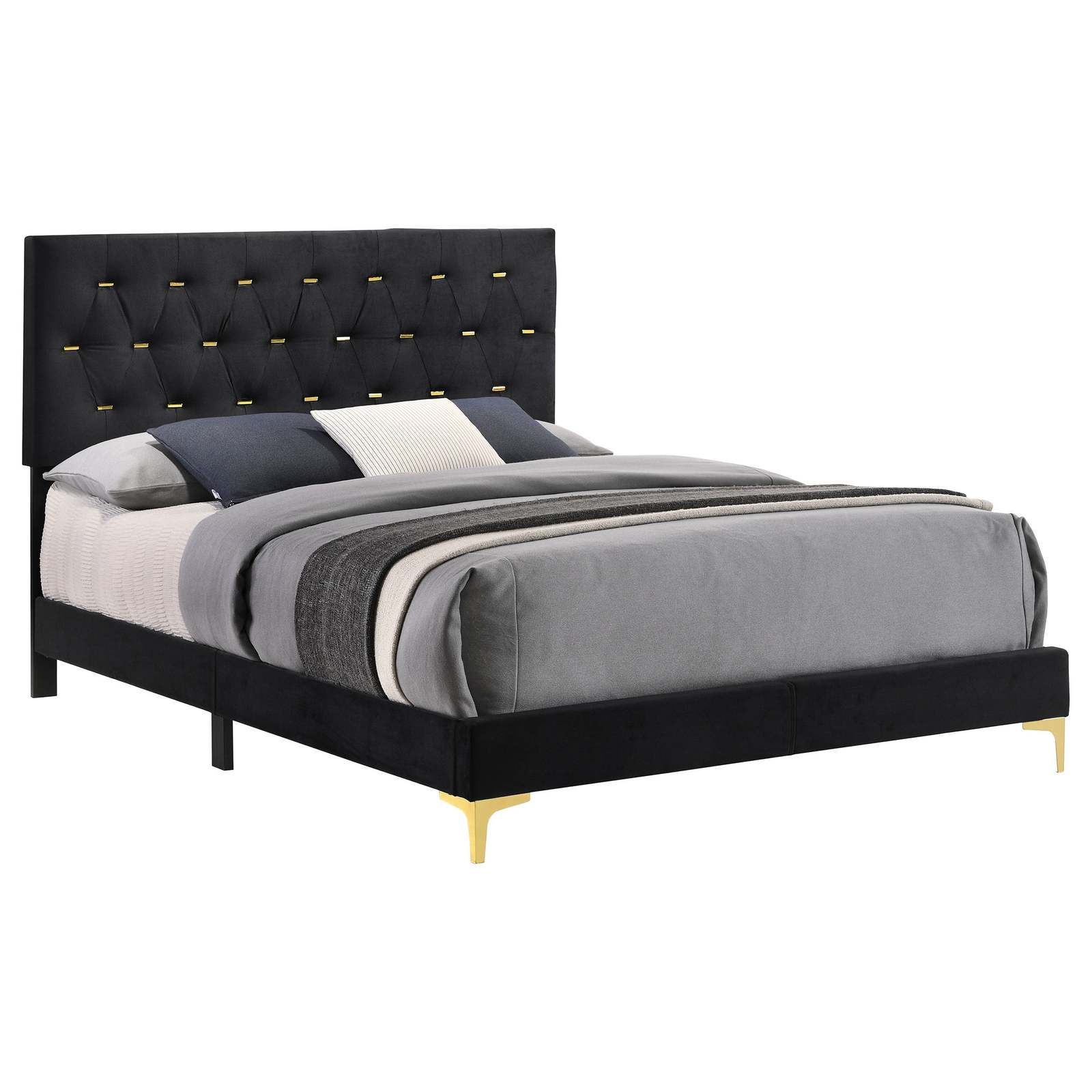 Lexie Black/Gold Diamond Tufted California King Panel Bed