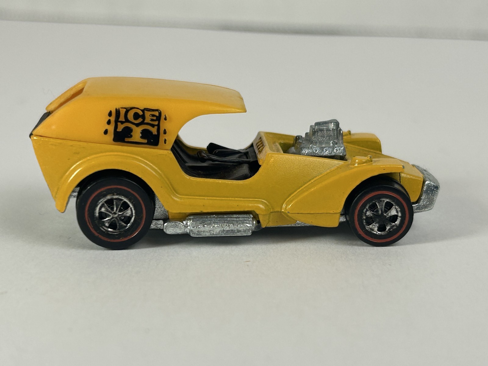 Vintage Hot Wheels Redline Ice T Yellow Diecast Car 1969 Hong Kong Button Case