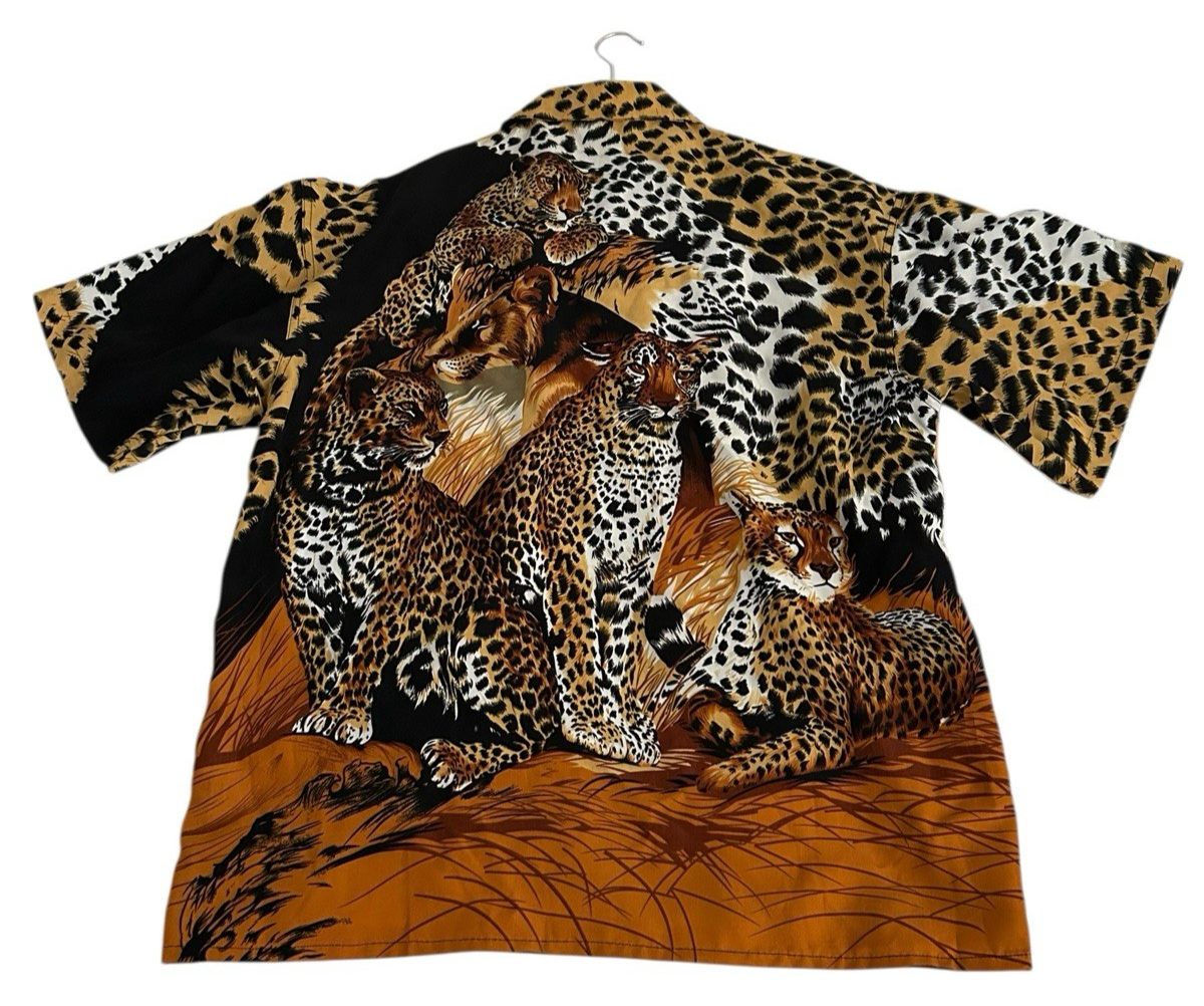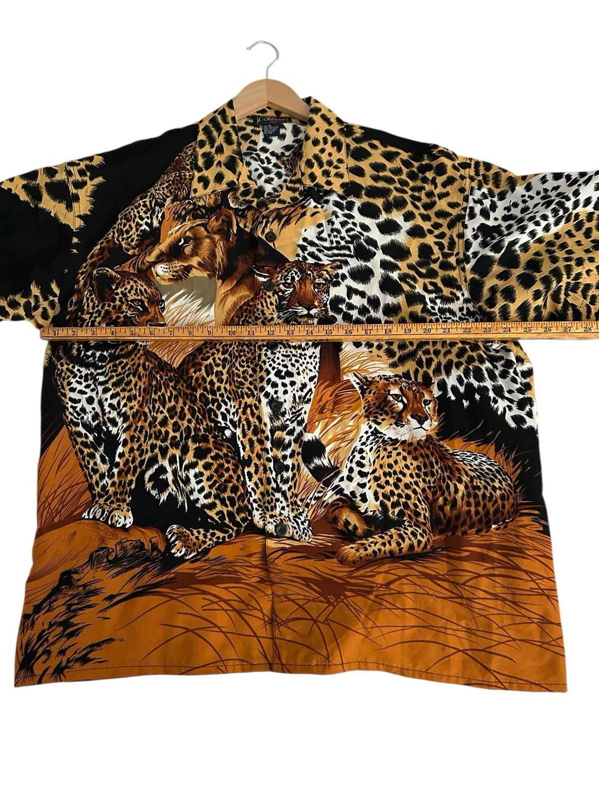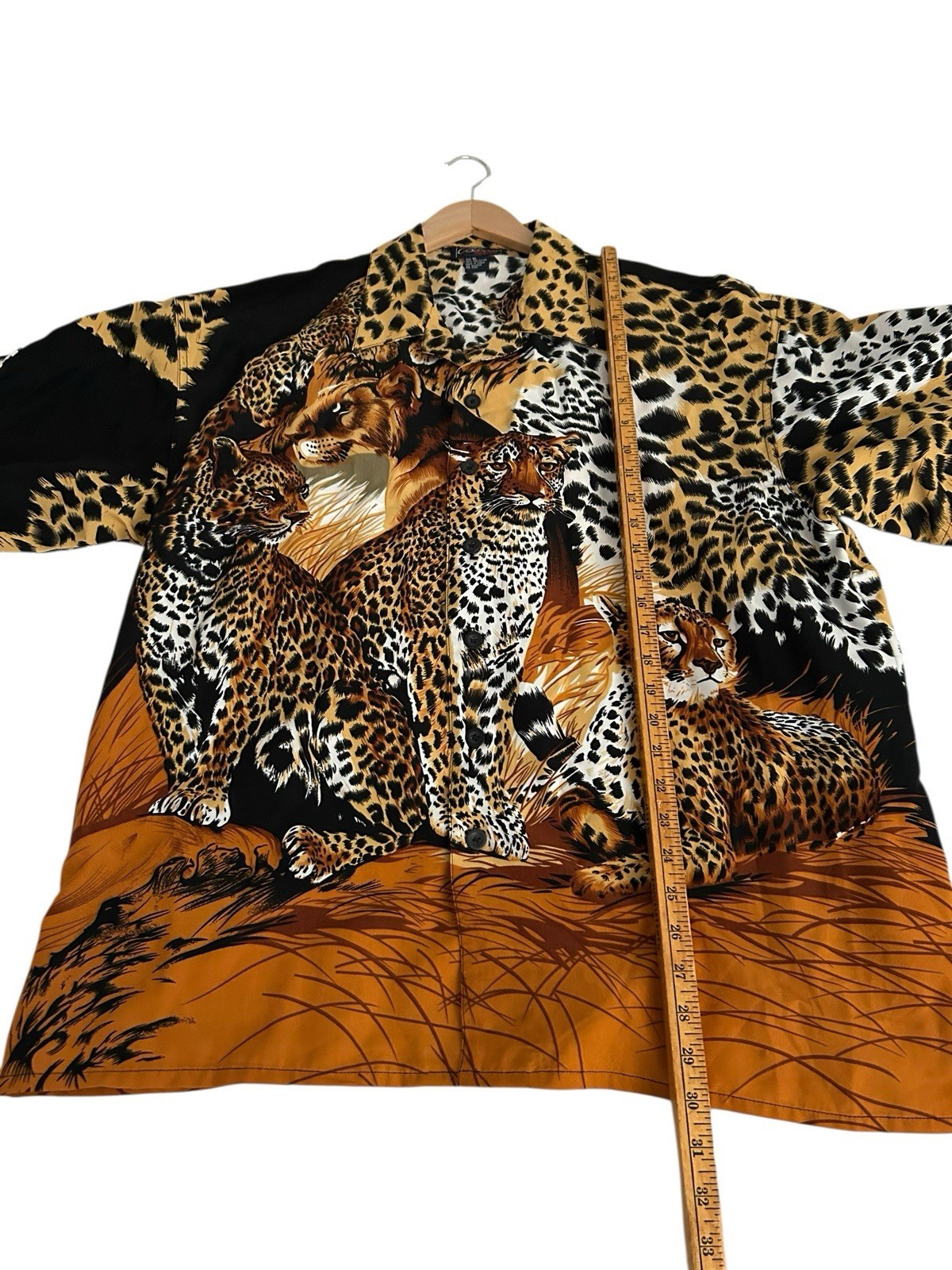 Vtg Leopard Cheetah Tiger Animal Print Wrinkle-free Hawaiian Camp Shirt Mens XL