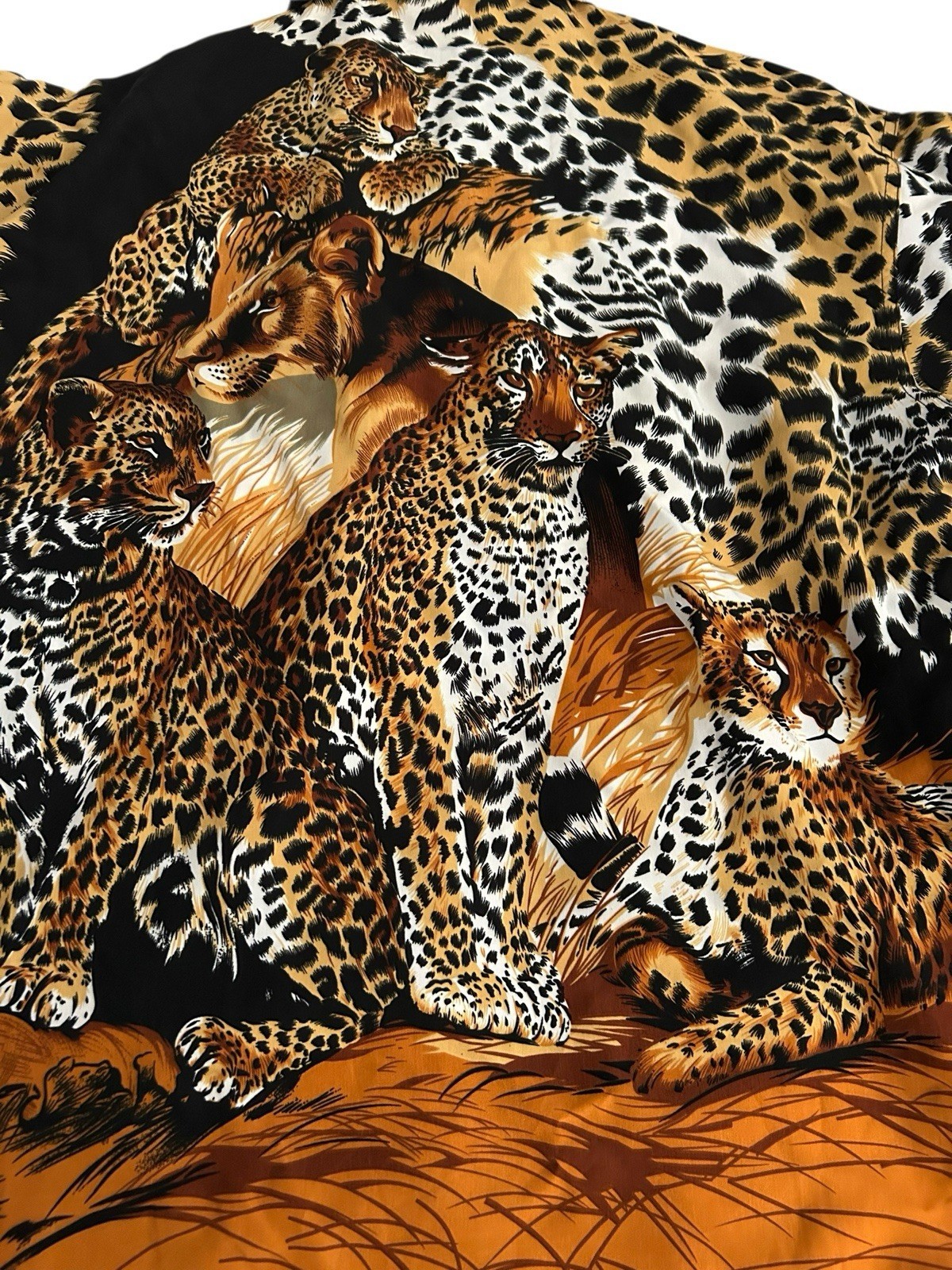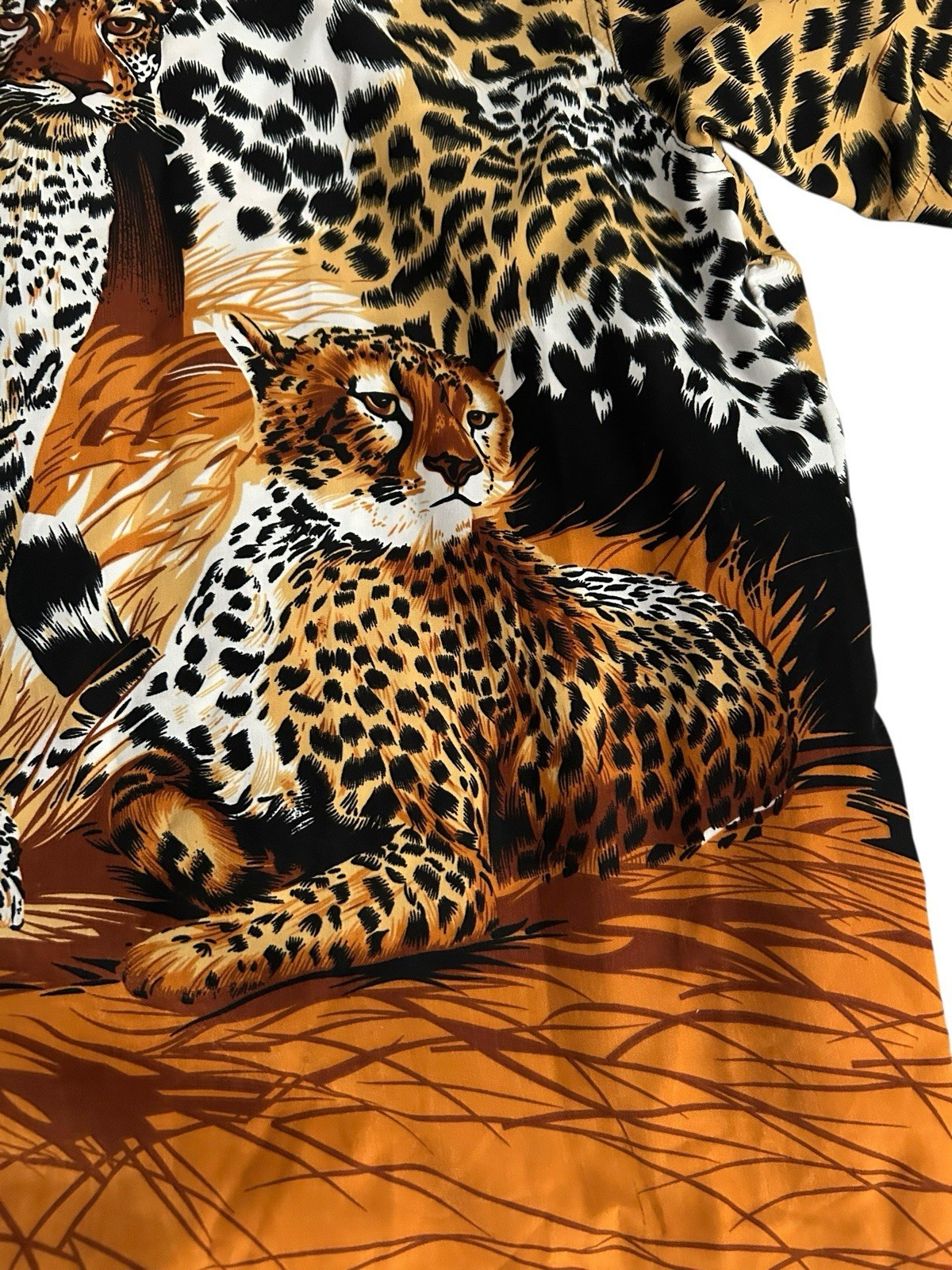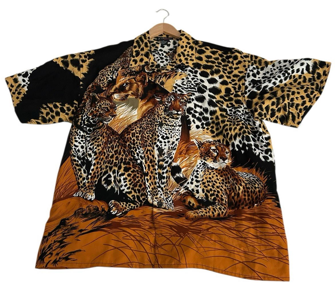 Vtg Leopard Cheetah Tiger Animal Print Wrinkle-free Hawaiian Camp Shirt Mens XL