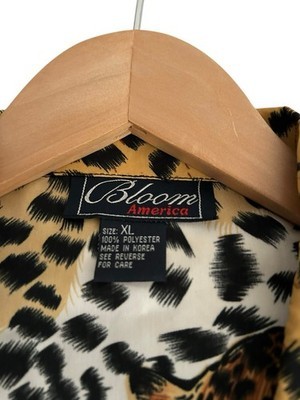 Vintage This Leopard Cheetah Tiger Animal Print Hawaiian Camp Shirt by Bloom America is a stylish and versatile addition to any man's wardrobe. Made from polyester with a Hawaiian theme, this shirt features a collared neckline, short sleeves, and a button closure. Perfect for various occasions like travel, casual outings, formal events, workwear, or business meetings, this shirt is easy to care for as it is machine washable. The XL size ensures a comfortable fit for those looking for a regular fit and a touch of Japanese character in their outfit.