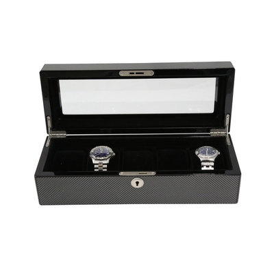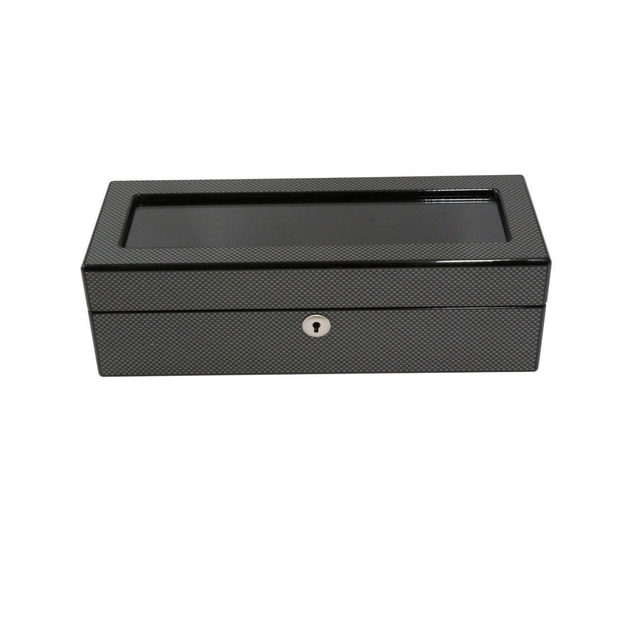 Bey Berk Lacquered "Carbon Fiber" Steel Gray 5 Watch Case Glass Top