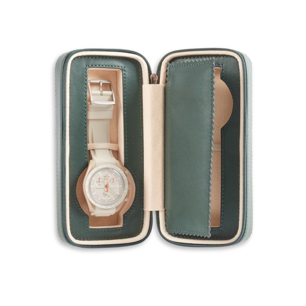 Bey Berk Davidson Leather Double Watch Travel Case in Hunter Green