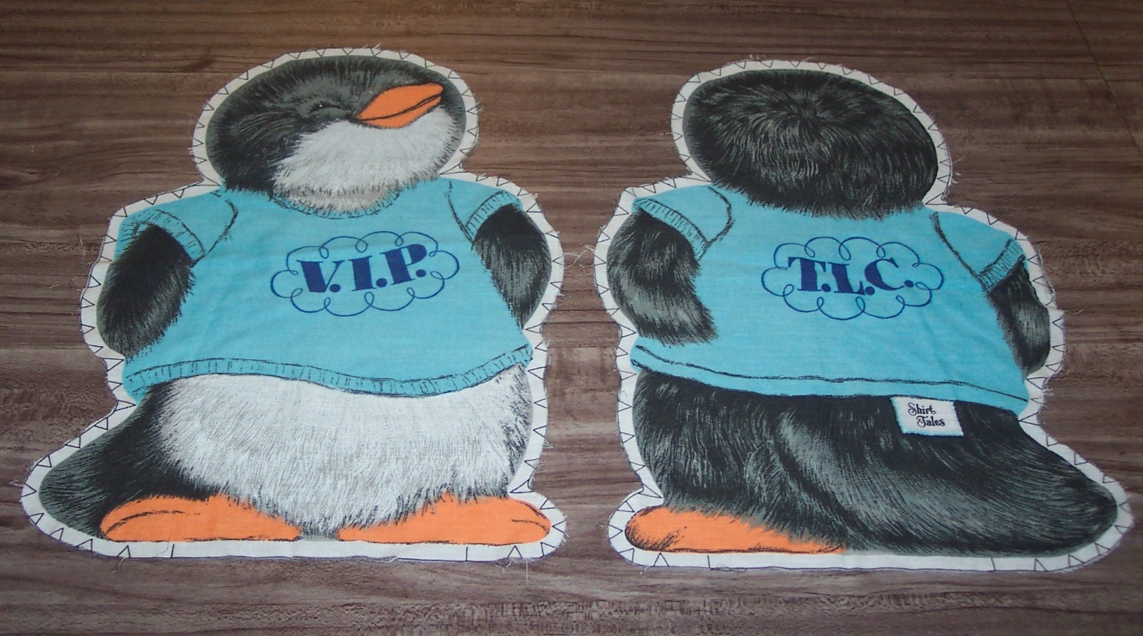 This is a Vintage SHIRT TALES VIP Penguin Sewing Cut Fabric Panel Set for Pillow Stuffed Animal Toy from 1980. Made by AMERITEX for Hallmark. Each Panel is 18 inches long by 13 inches wide. Sew them together and stuff to make a Stuffed Animal Pillow. EAG