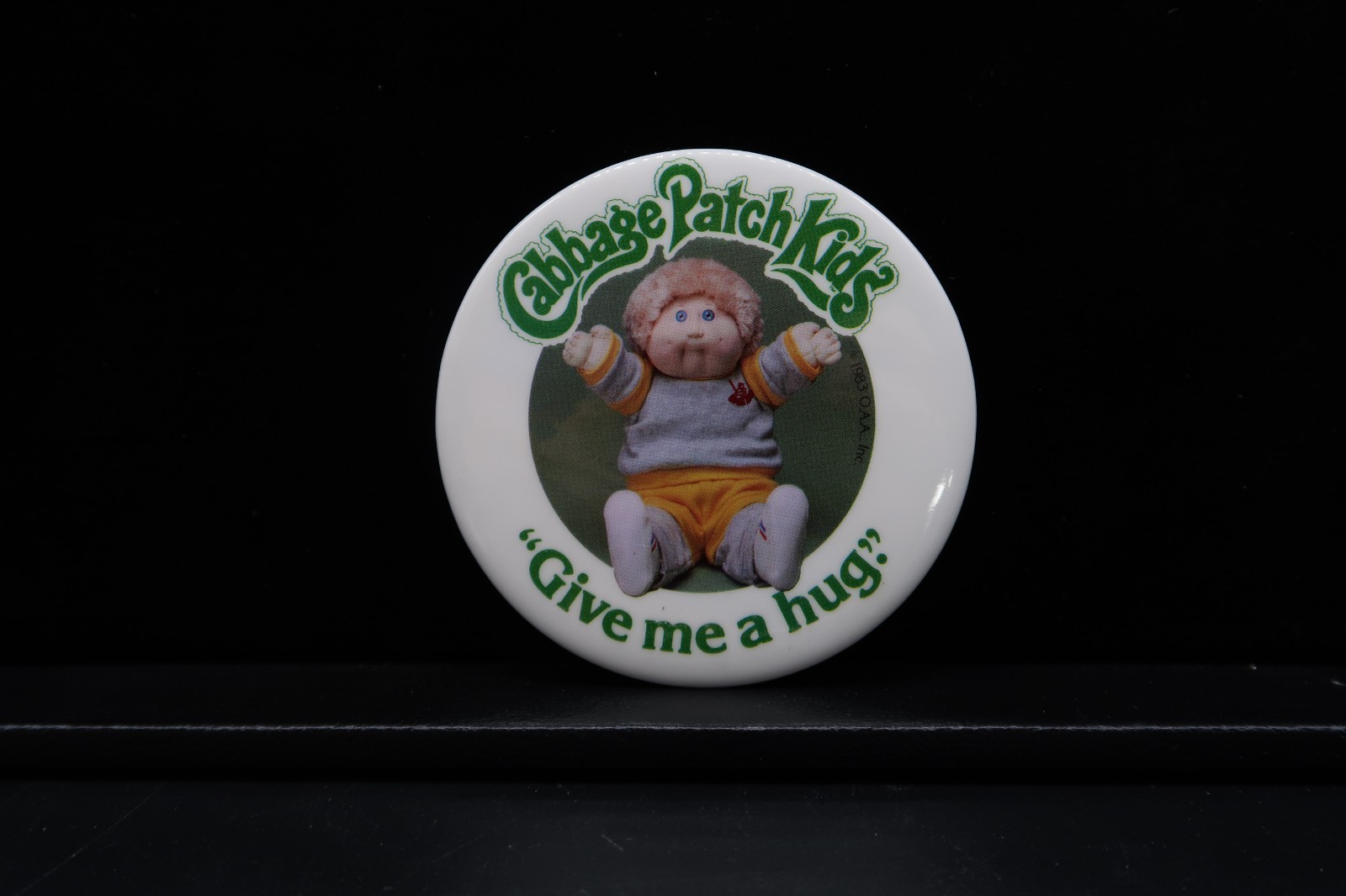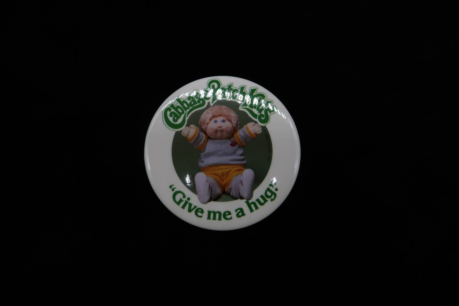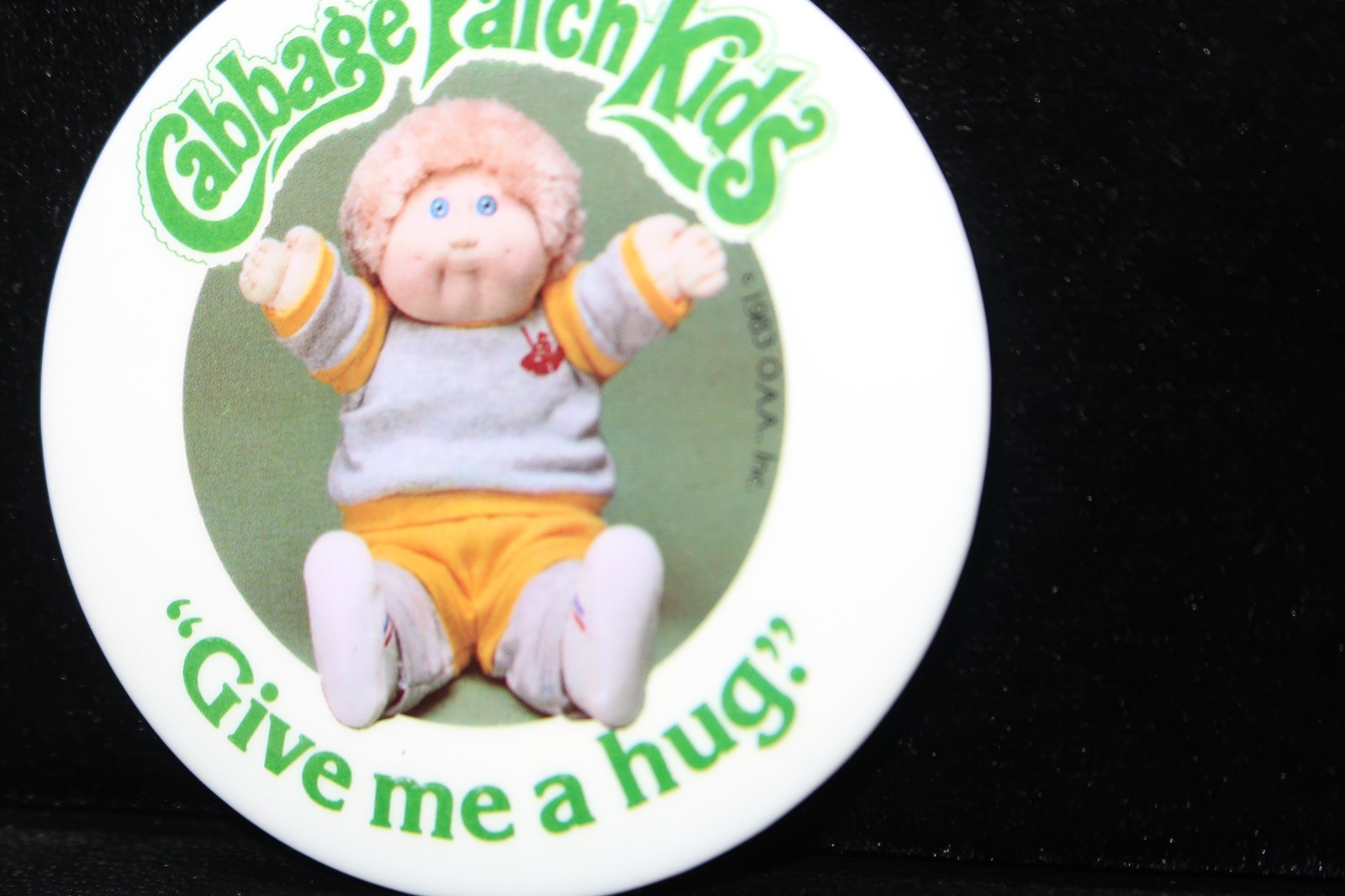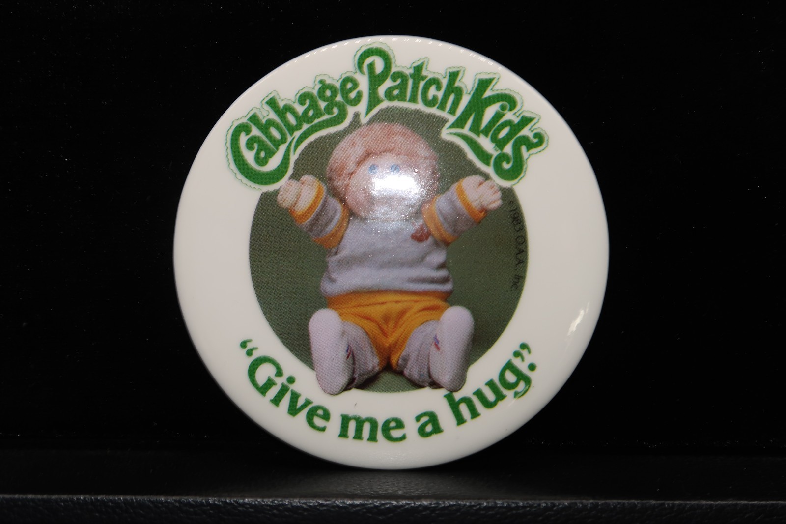 Vintage 1983 Cabbage Patch Kids "Give Me A Hug" 3" Round Pin Button NOS HTF