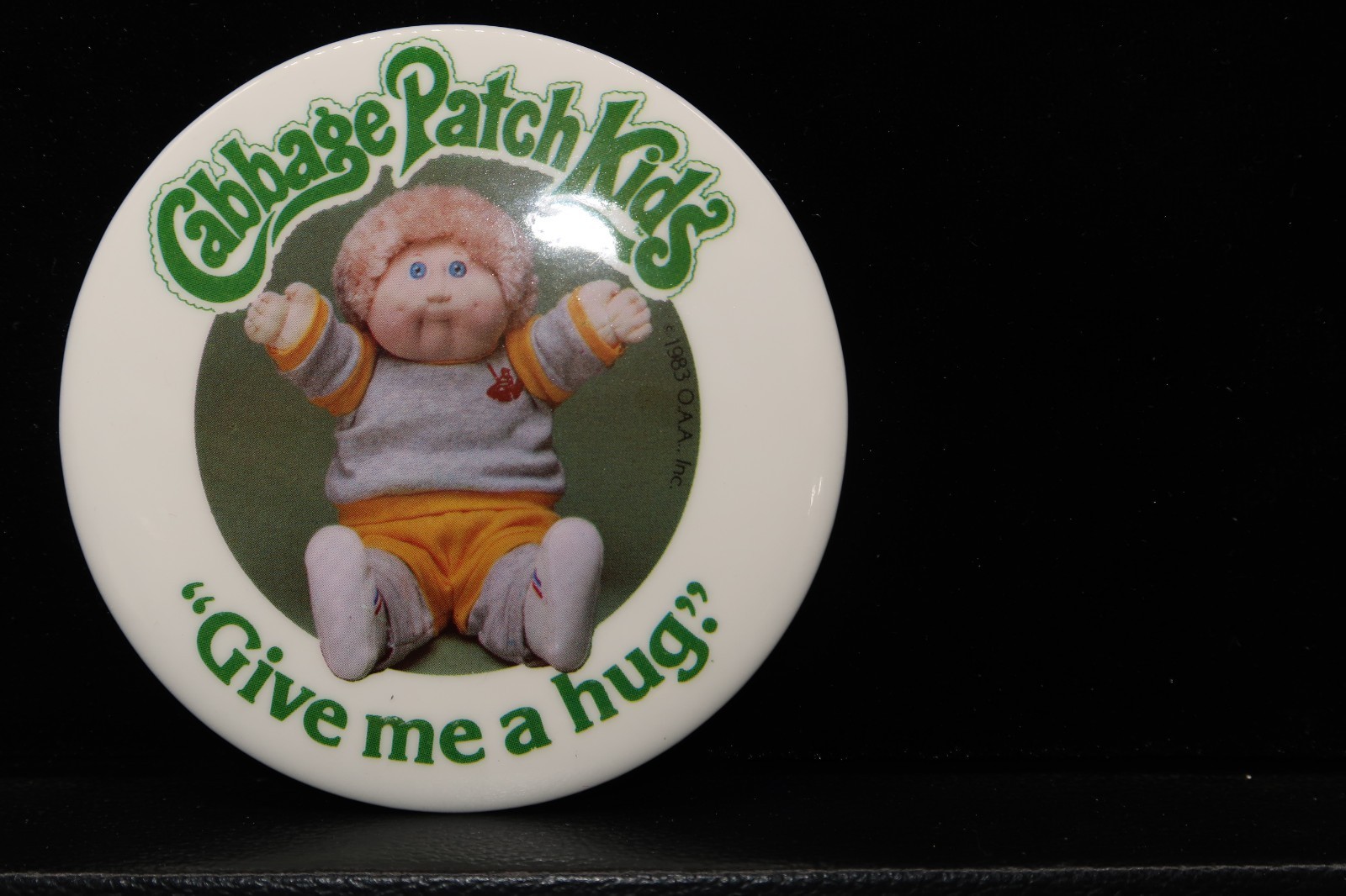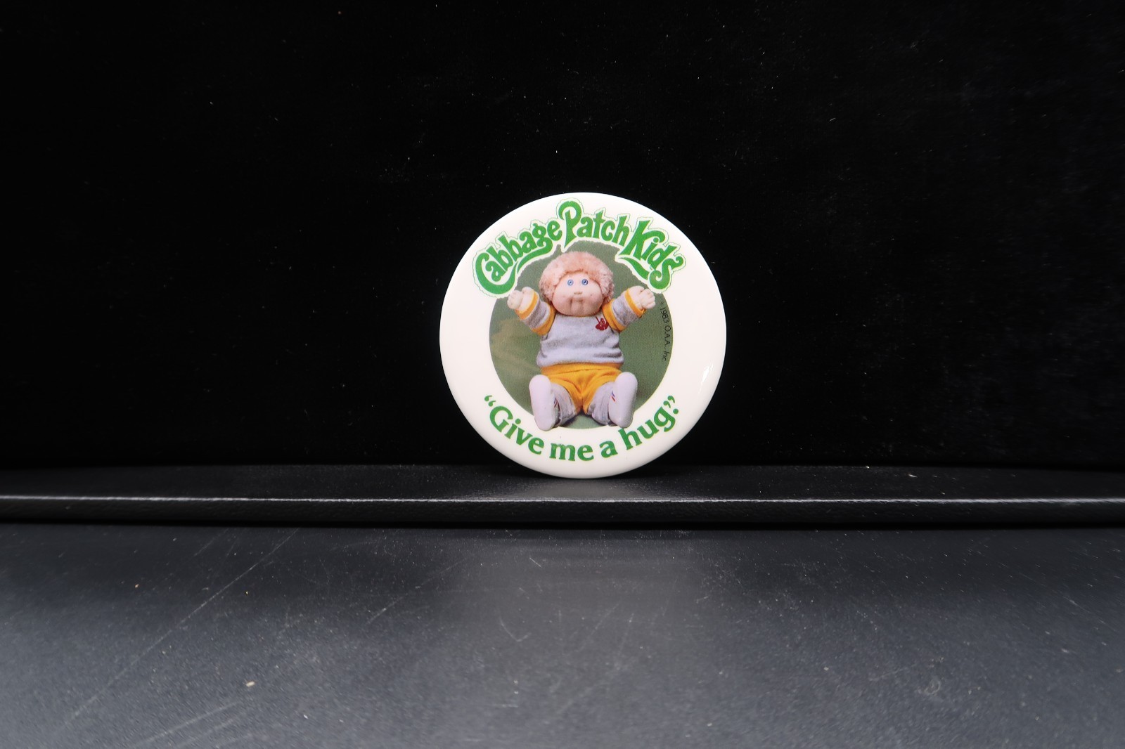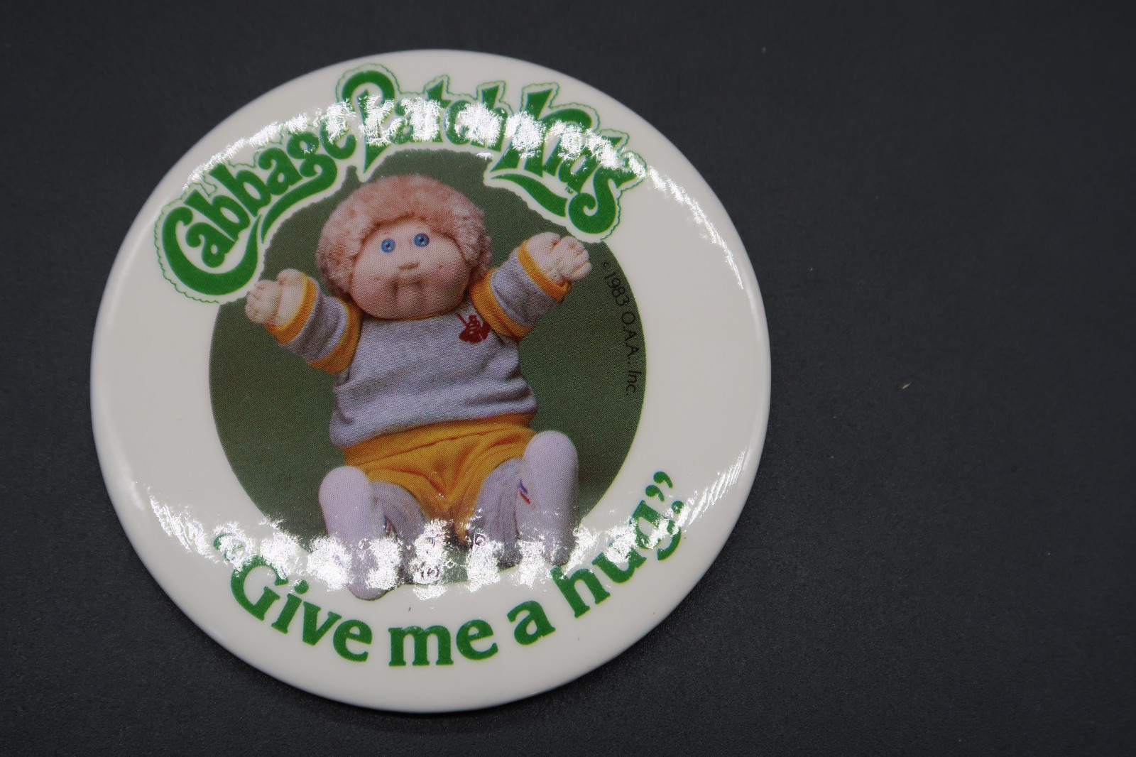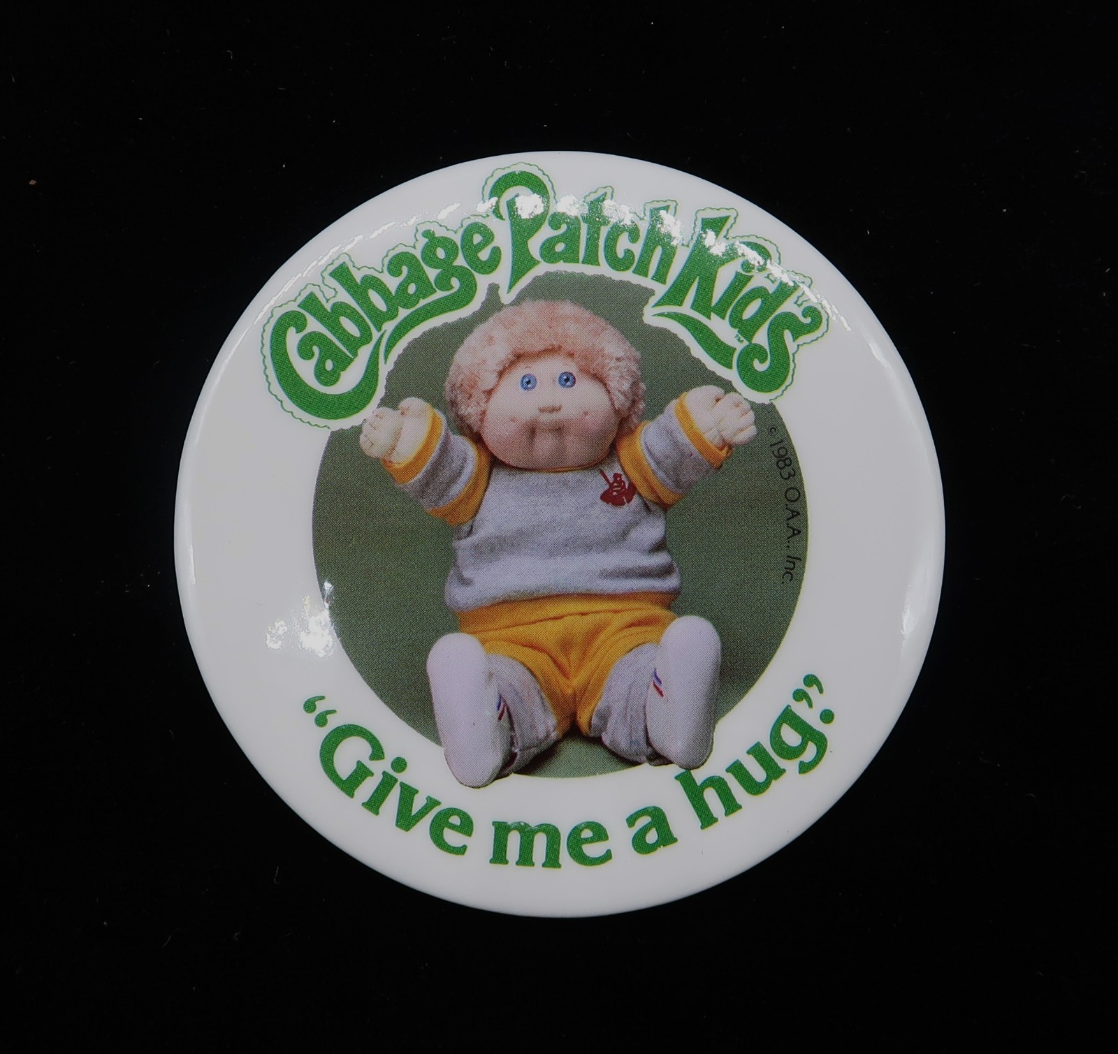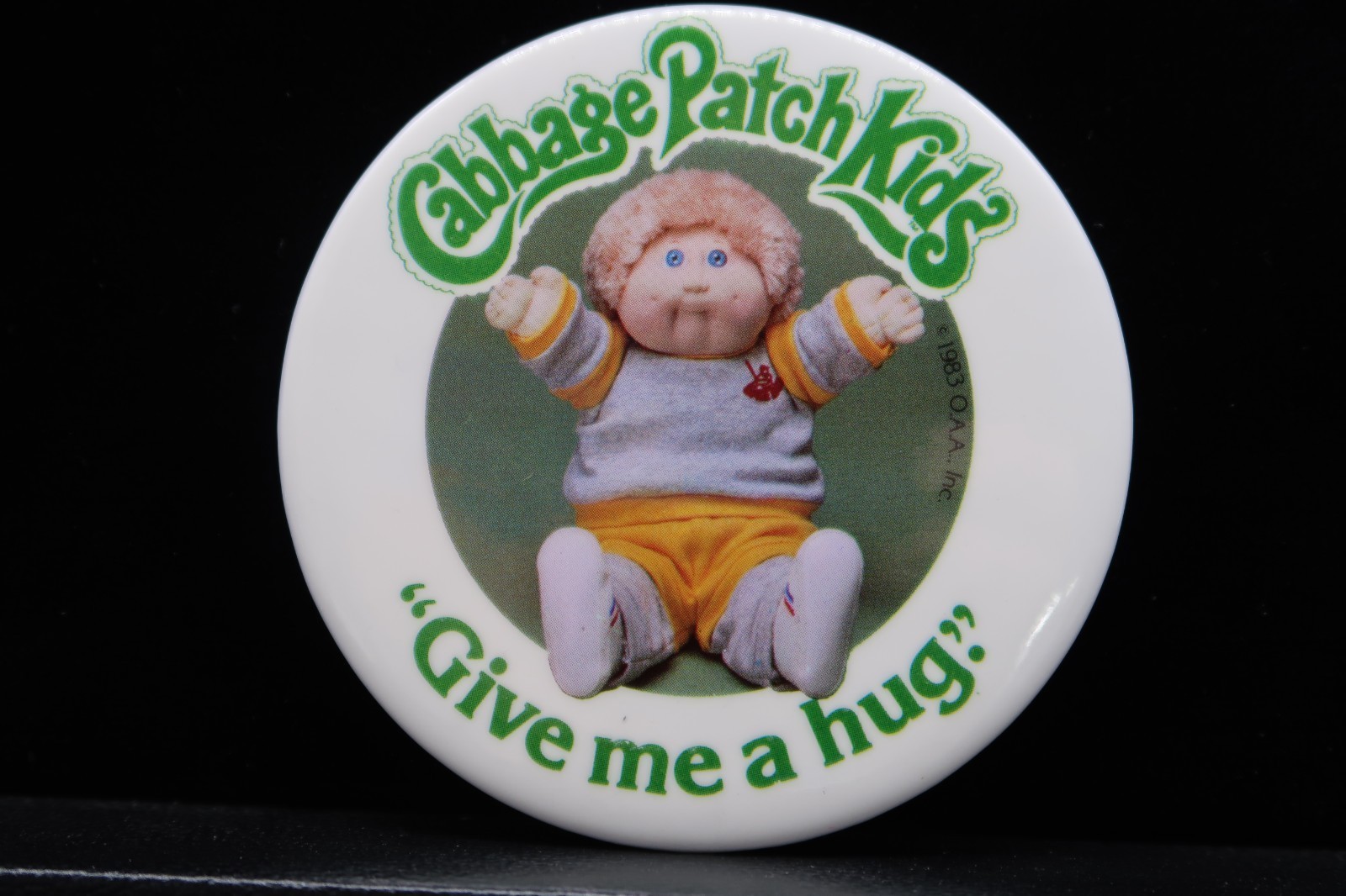Vintage 1983 Cabbage Patch Kids "Give Me A Hug" 3" Round Pin Button NOS HTF
