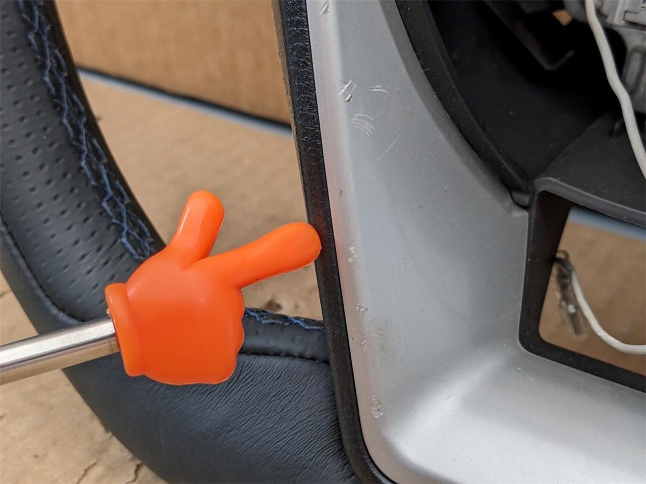 This steering wheel will come with minor cosmetic blemishes such as scratching on the leather and on a the face of the steering wheel as shown below in images 2-4. Please reference the images below and part numbers provided to insure that you're ordering the correct steering wheel.