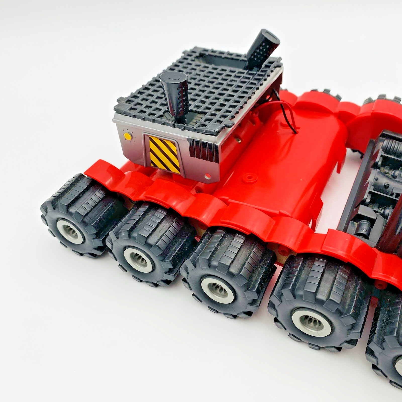 The 1985 Galoob Power Machines Giant Command Truckapillar is a motorized toy that operates on battery power. Made by the brand Galoob, this toy truck features a unique design that is sure to appeal to children aged 8-11 years old who are interested in trucks. Truck comes incomplete with some moderate play/paint wear present. Truck does have a broken bar above the cab and some wear on wheels. Battery cover appears to be missing but compartment is clean and corrosion free. Truck has been tested with batteries and wheels roll back and forth with levers. As I'm not very familar with this toy and its operation no further testing has been done. Please see pictures for exact details of item you will recieve. Be sure to check out my store for more. Add 3 or more items to cart and save 20%! Thanks for viewing.