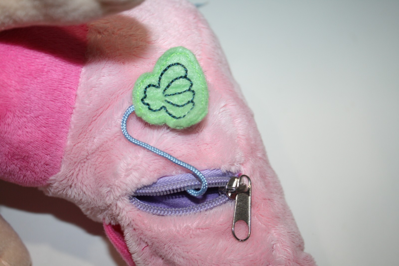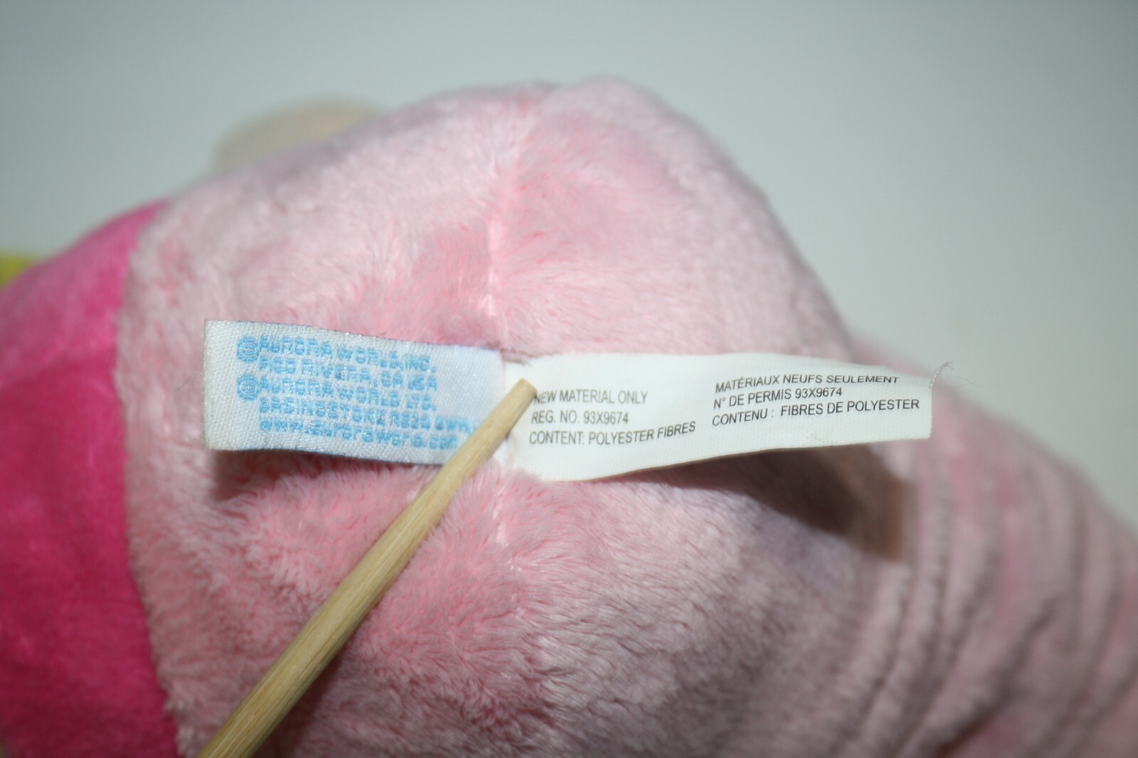 She is made of soft plush materials, All sewn features, Teach me to Button, Zip, Hook and Loop and Tie, Seam/tush tags intact