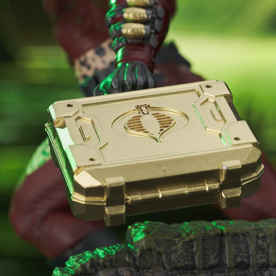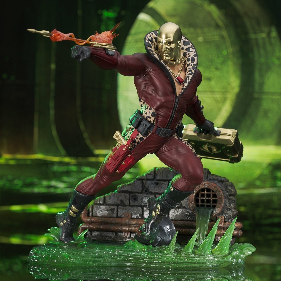 Profits are up, and MARS CEO Destro has a whole new look! As owner of his own weapons manufacturing company, Destro is one of COBRA's key members, and likes to look the part. His latest purchase is this sweet new ensemble for important business meetings and wild nights on the town! With leopard-print trim, this new look is exclusive to this Showcase-edition Gallery Diorama of Destro firing his wrist missiles and running through the sewers after a deal gone wrong. This sculpture stands approximately 10 inches tall, is made of high-quality PVC and features detailed sculpting and paint applications. It comes packaged in a full color window box.