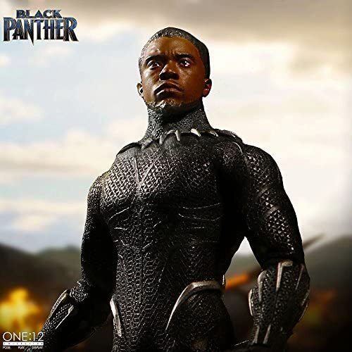 Direct from the eagerly anticipated and groundbreaking feature film, Mezco welcomes Black Panther into the One:12 Collective. Intricately designed with a cloth outfit recreating that of King T?Challa?s Vibranium suit, authentically detailed accessories replicating those seen in the movie, and the likeness of actor Chadwick Boseman.