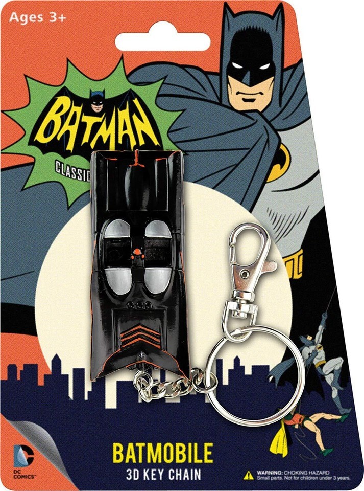 Animated Classic Batmobile 3D Comic Book Hanging Keychain Charm
