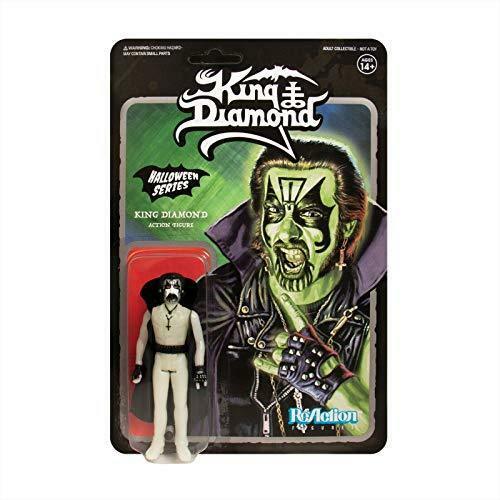 The legendary Monarch of Heavy Metal Darkness King Diamond comes with cape and crossed bones mic stand accessories! This limited edition version of King Diamond is in diabolical glow-in-the-dark with matching card back art.