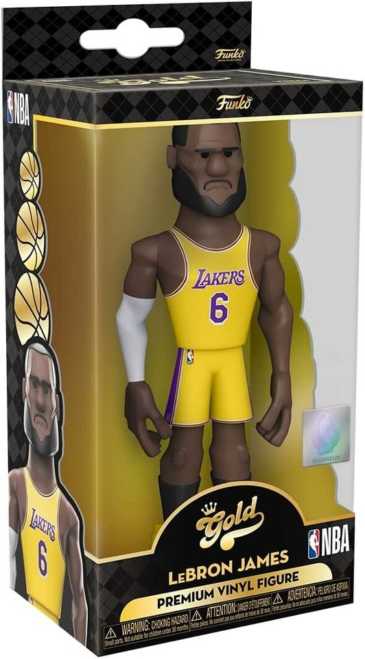 Long live the King! The LeBron James figure is here!Vinyl Gold Figure stands 5'' and comes in a window display box.