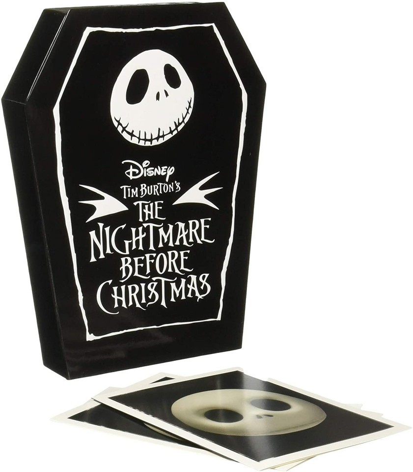 His head may be detachable and his face may be fearsome, but the merrily macabre Jack Skellington is crazy over Christmas-even though he sees the Yuletide festivities from his own Halloween-skewed point-of-view. Through the magic of stop-motion animation, the Pumpkin King expresses many a heartfelt emotion through his skull-like face, for the puppet-figure animators that brought this soulful skeleton to life employed nearly 180 interchangeable heads to convey every sentiment Jack is feeling in his bones. Making everyone feel like an honorary citizen of Halloween Town, Jack is here to celebrate 25 years of Tim Burton?s The Nightmare Before Christmas with frightfully ten different faces-complete with the corresponding movie moment on the back of each note card- that only a monster (or a monster-lover) could love.