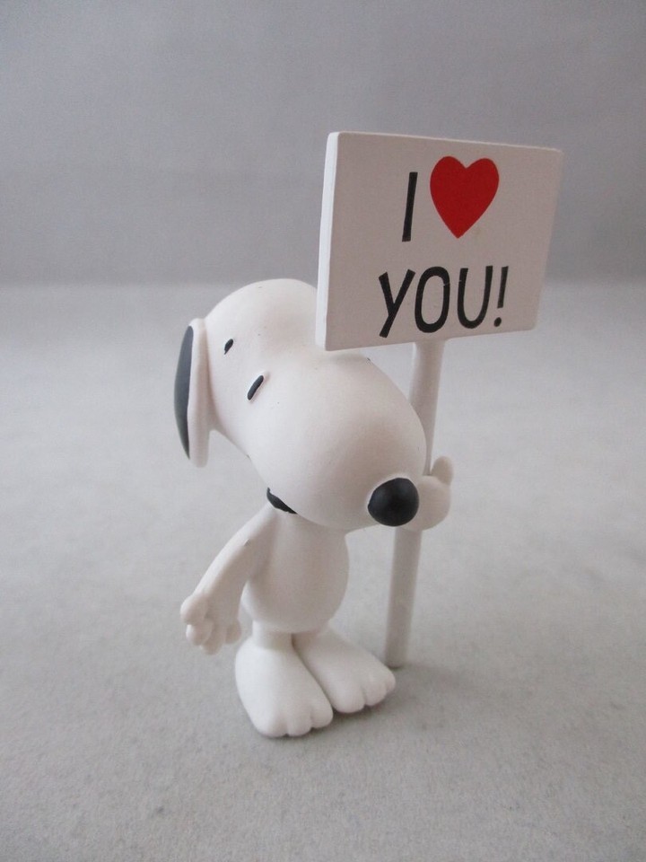 Snoopy w Heart, Charlie Brown w Heart, Belle w Heart, and Snoopy w I Love you! Sign