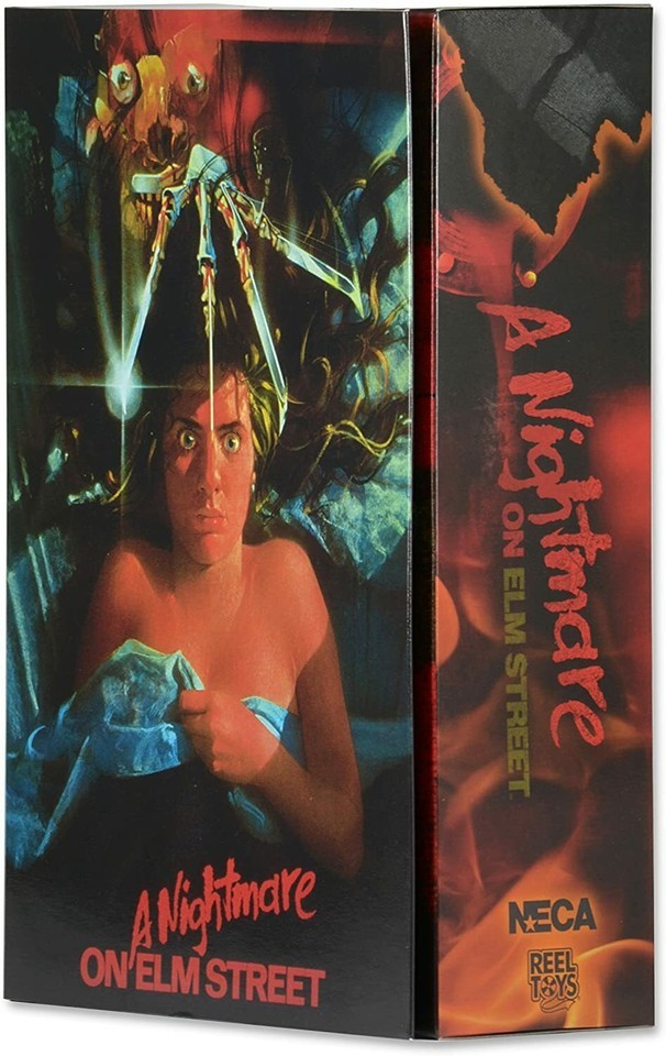 To commemorate the 30th Anniversary of the original Nightmare on Elm Street we are proud to present the definitive version of Freddy as he first appeared in the 1984 classic. Freddy stands nearly 7" tall and features an all new fully articulated lower body featuring ball-hinged thighs and knees. Freddy includes 3 interchangeable heads including closed mouth, open mouth grimace and skull face. He features an interchangeable left hand with 2 fingers cut off and includes a dead skin mask, tongue phone and his trusty fedora. Loaded with features, detail and articulation this is the Freddy figure to own.