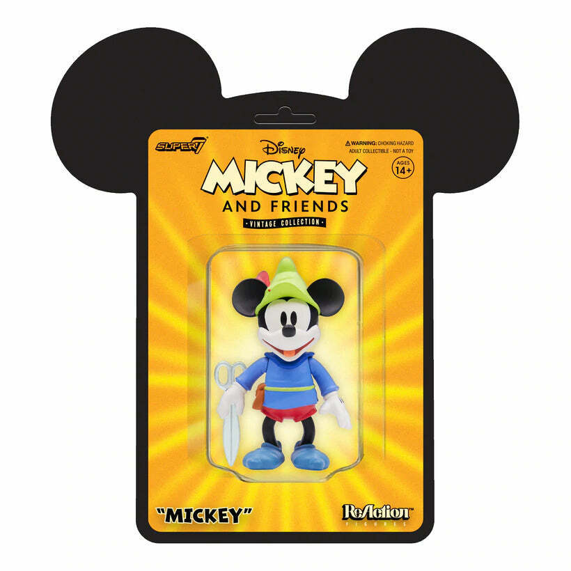 A series of misunderstandings resulted in a Giant problem for Mickey Mouse! This 3.75? articulated Disney Mickey Friends Vintage Collection ReAction figure of Mickey Mouse is from the classic ?Brave Little Tailor? animated short film, and features our intrepid tailor in his peasant attire and comes with his trusty pair of scissors.