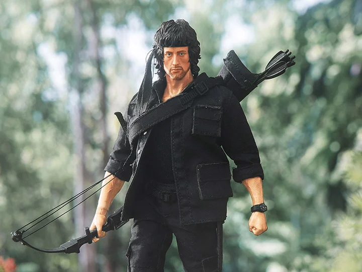 From Hiya Toys. A PREVIEWS Exclusive! Hiya Toys presents the Exquisite Super Series Rambo 1/12 scale action figure from Rambo: First Blood 2. This fully-articulated collectible figure stands at 6.3" tall and features a custom designed body to accurately reproduce classic action poses from the movie! The figure comes equipped with various accessories, including a survival knife, SPAS-12 shotgun, AK47 assault rifle, compound bow, and RPG-7 rocket launcher, along with interchangeable hand parts. The figure's head sculpt faithfully reproduces Rambo's facial features, and his outfit is made from real cloth for superior poseability and aesthetic appeal. Don't miss adding this PREVIEWS Exclusive Exquisite Super Series Rambo to your collection!