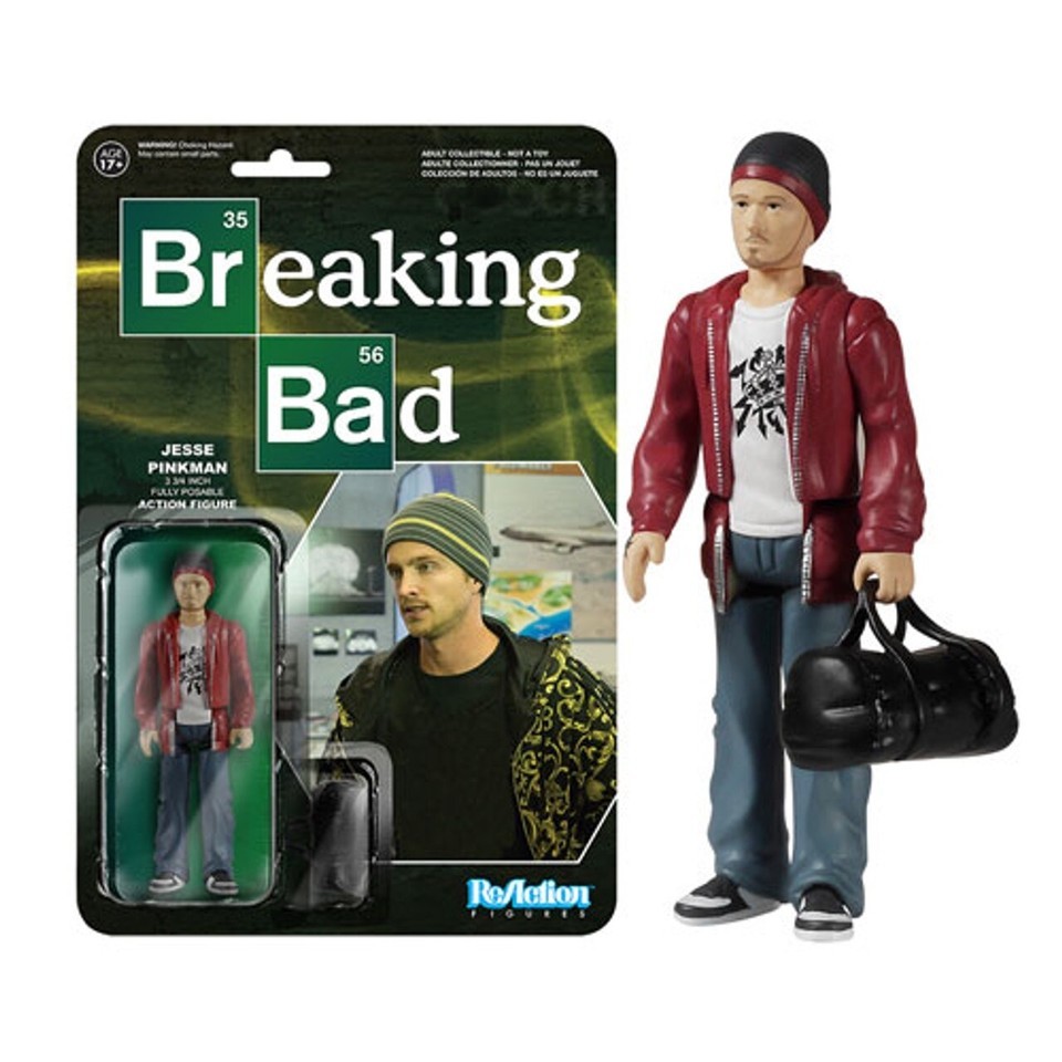 Hold on to your hats, bitches. Jesse Pinkman in his classic hoodie and beanie! Featuring the likeness of Aaron Paul as a simplified retro Kenner format! Breaking Bad fans definitely need this sweet 3 3/4-inch tall action figure. The Breaking Bad Jesse Pinkman ReAction Figure has 5 points of articulation and features the 1980s style card back design.