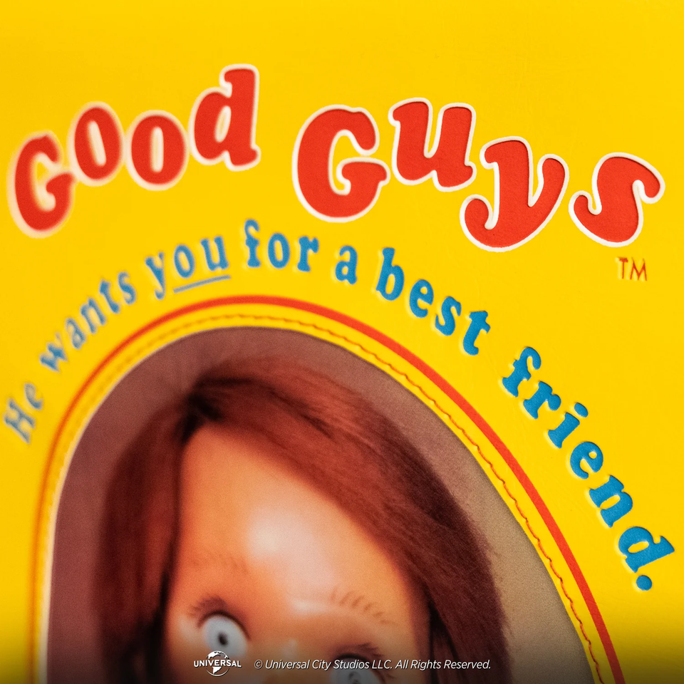 The officially licensed Universal Studios, Child?s Play 2 - Good Guy Box Bag is a must-have for any Chucky fan. This incredible bag is based on the iconic Good Guys Doll box and is the perfect way to show you are a real friend ?till the end!