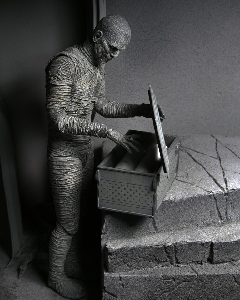 For the 90th anniversary of the extraordinary silver-screen classic, NECA presents The Mummy action figure in authentic black-and-white!